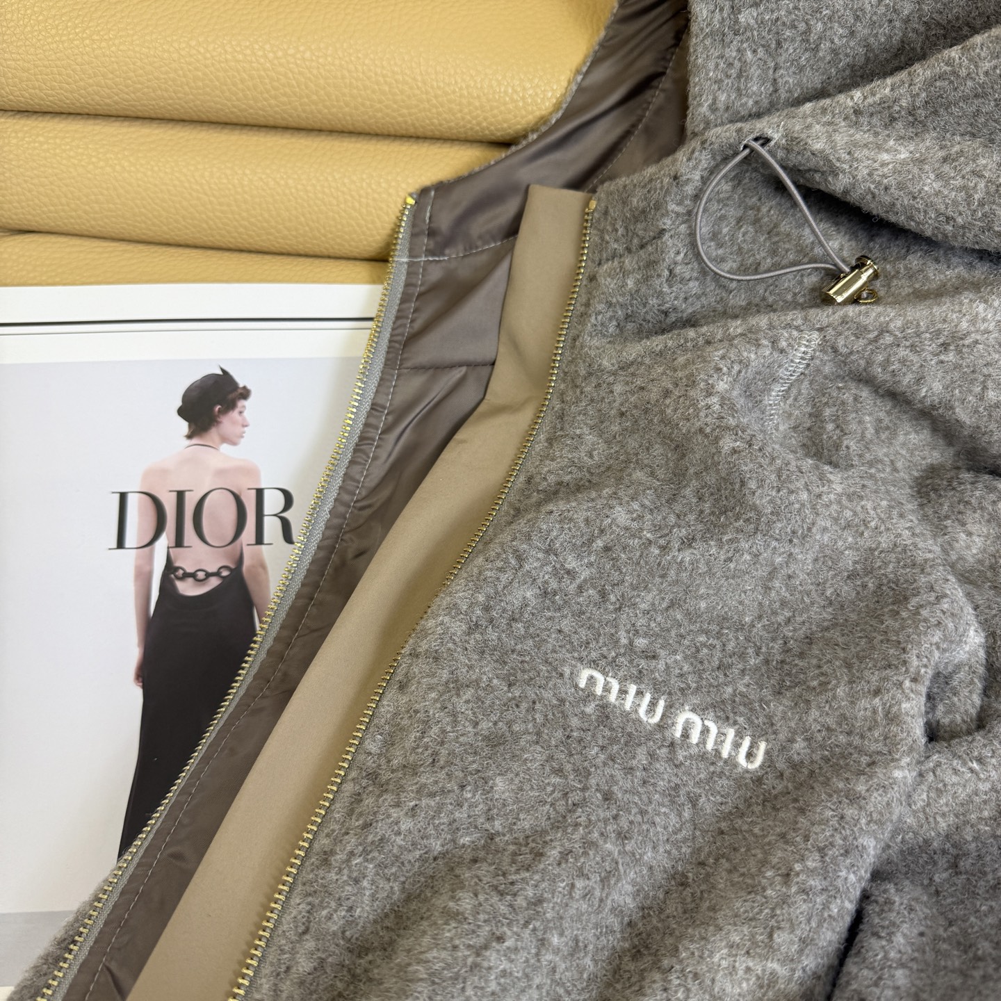 这款衣服是AAAAA 1:1 质量 (非常棒). 使用了和原版一模一样的材料. 商标部分也保持了和缪缪/Miu Miu一样. 图片拍摄是实物衣服拍摄, 您所收到的实物保证和我们图片一模一样.