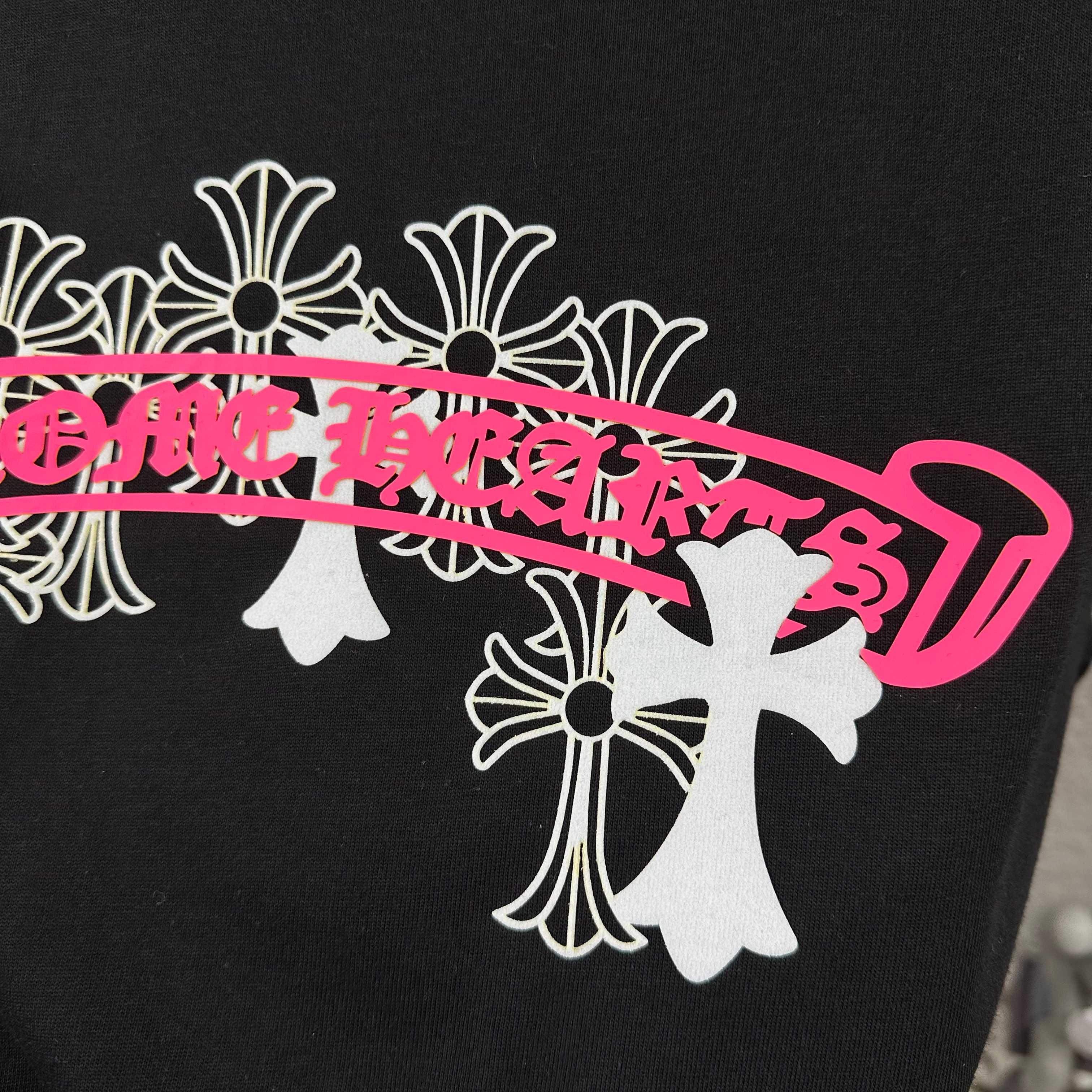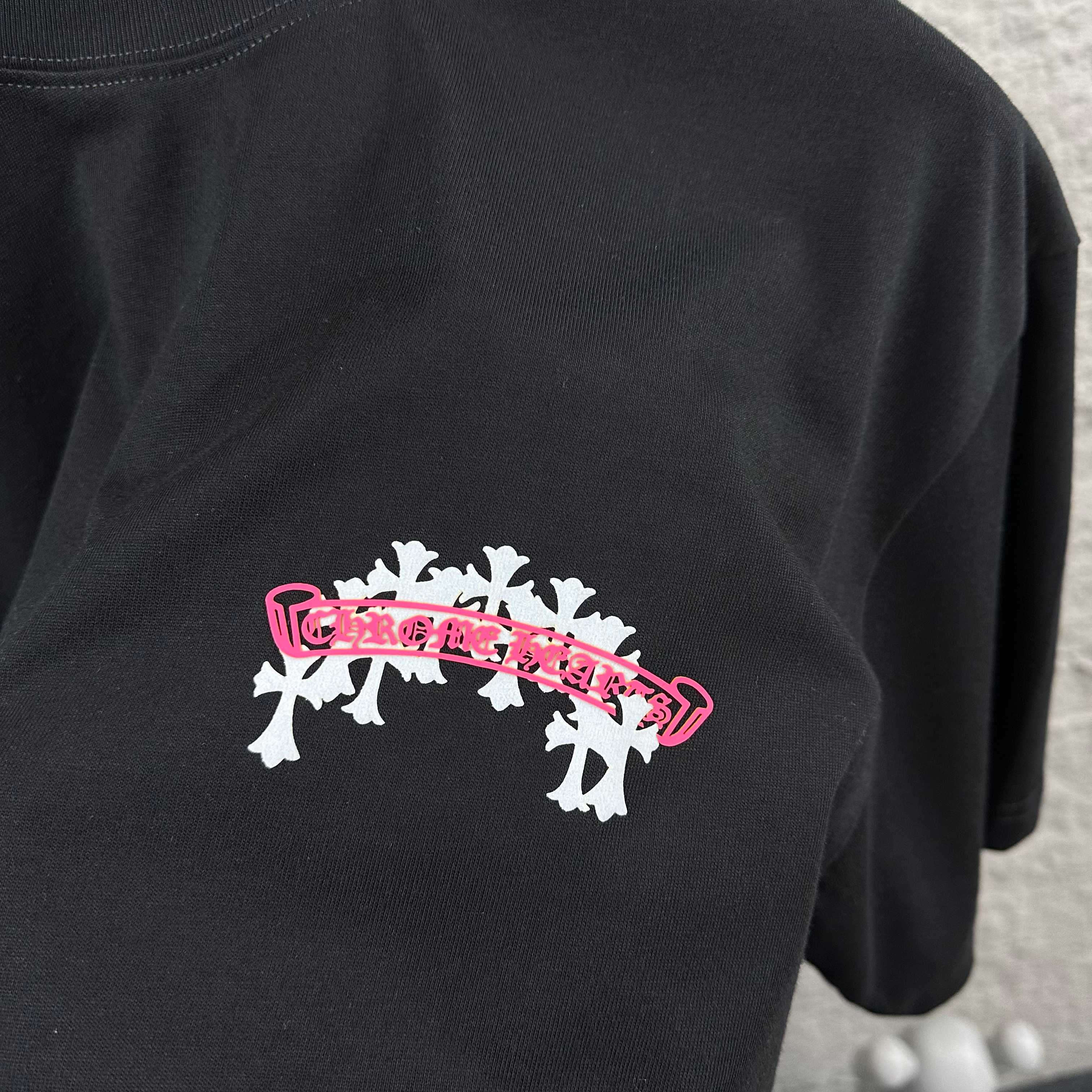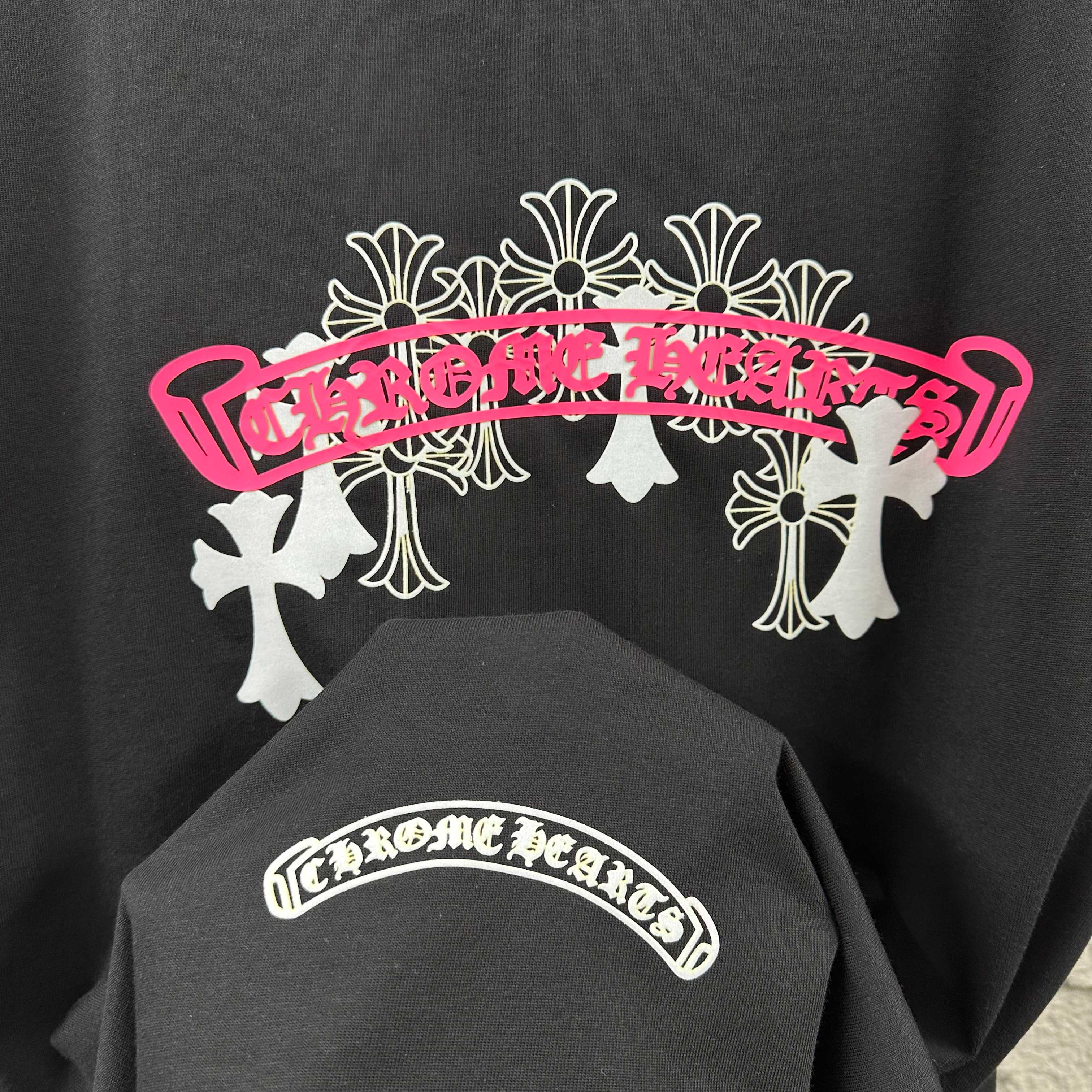这款衣服是AAAAA 1:1 质量 (非常棒). 使用了和原版一模一样的材料. 商标部分也保持了和克罗心/Chrome Hearts一样. 图片拍摄是实物衣服拍摄, 您所收到的实物保证和我们图片一模一样.