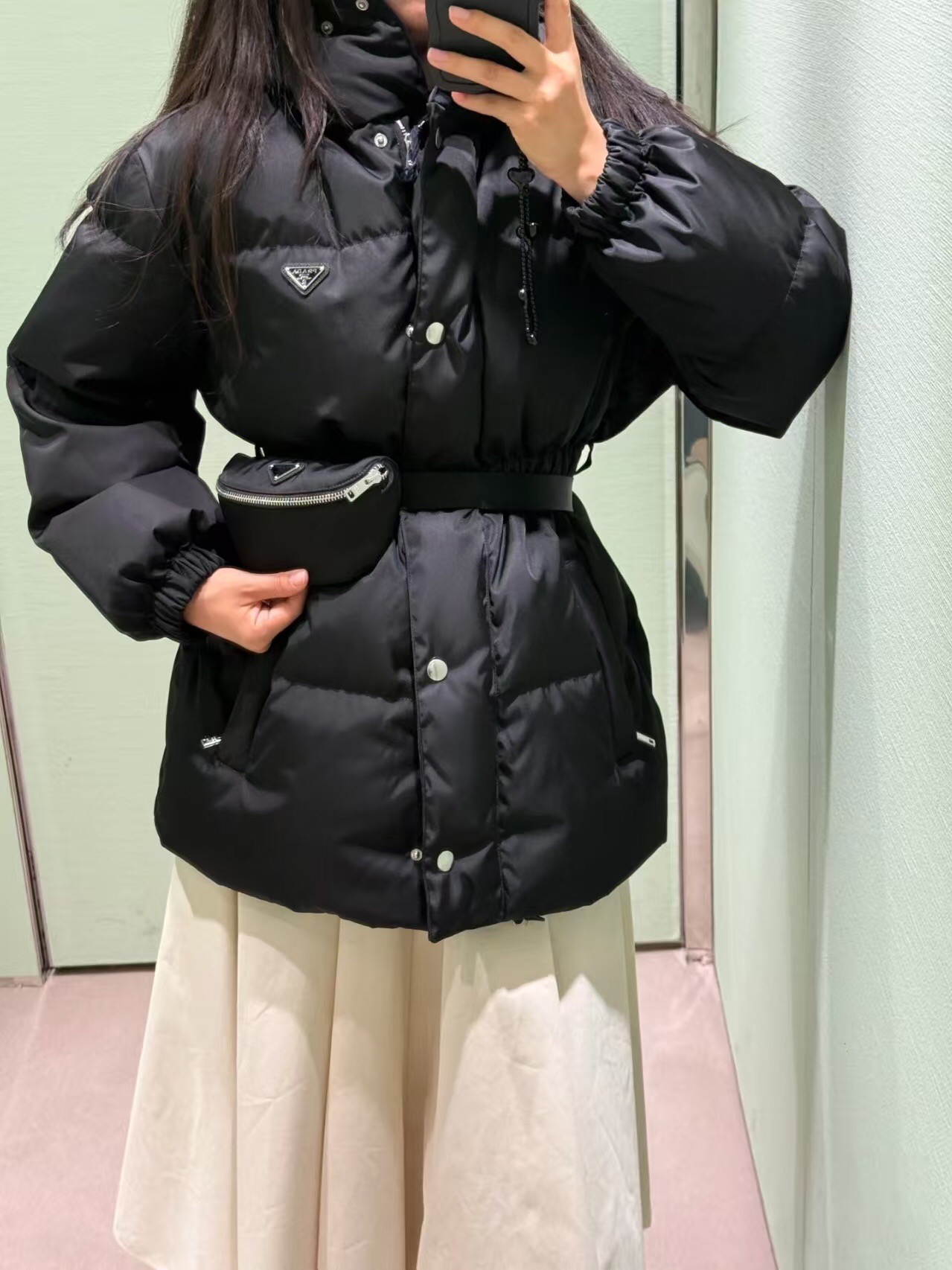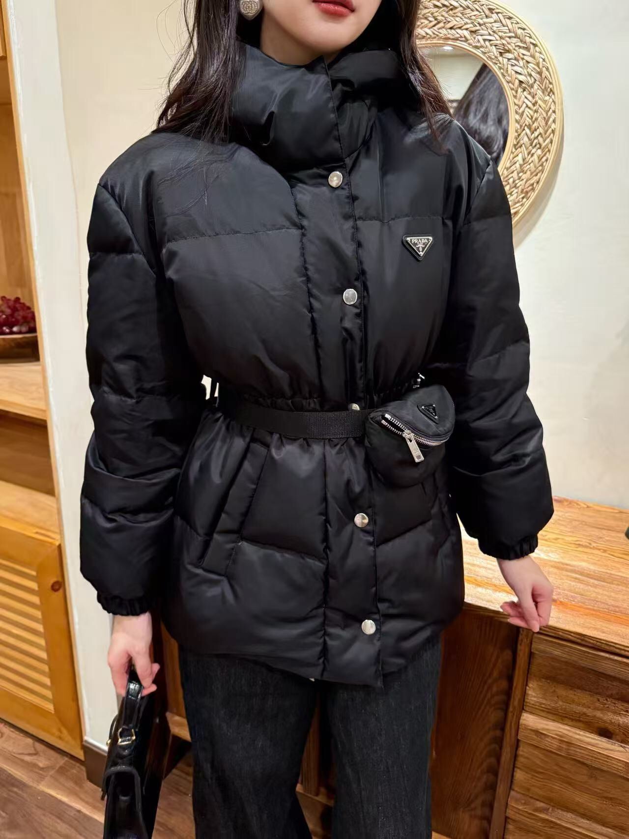 这款衣服是AAAAA 1:1 质量 (非常棒). 使用了和原版一模一样的材料. 商标部分也保持了和普拉达/Prada一样. 图片拍摄是实物衣服拍摄, 您所收到的实物保证和我们图片一模一样.