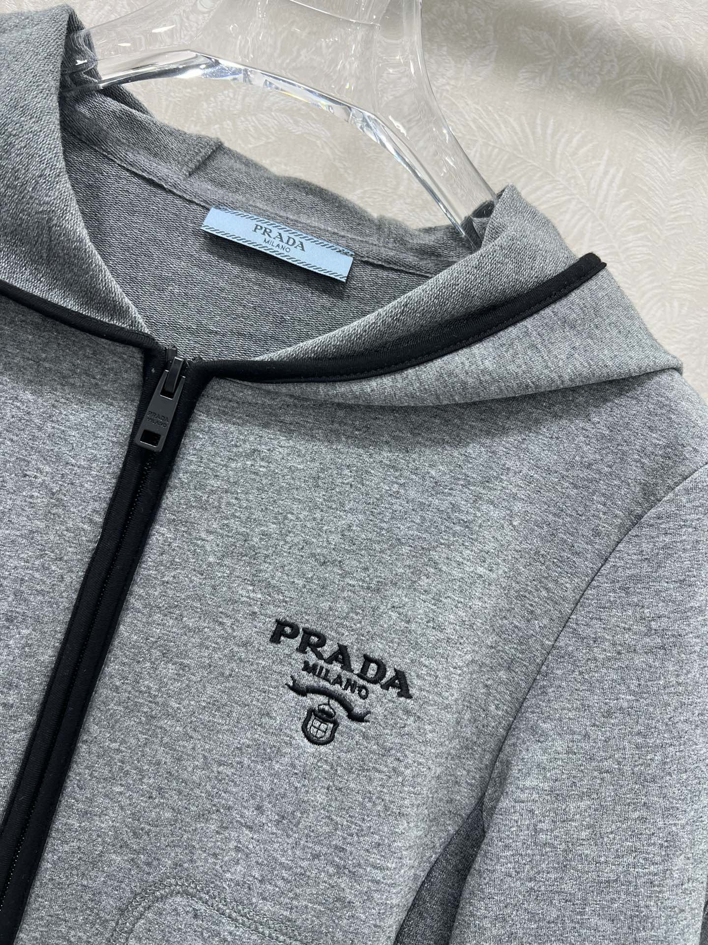 这款衣服是AAAAA 1:1 质量 (非常棒). 使用了和原版一模一样的材料. 商标部分也保持了和普拉达/Prada一样. 图片拍摄是实物衣服拍摄, 您所收到的实物保证和我们图片一模一样.