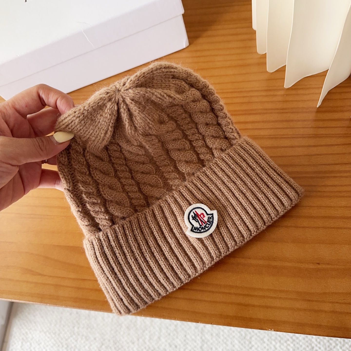 这款帽子是AAAAA 1:1 质量 (非常棒). 使用了和原版一模一样的材料. 商标部分也保持了和盟可睐/moncler一样. 图片拍摄是实物帽子拍摄, 您所收到的实物保证和我们图片一模一样.