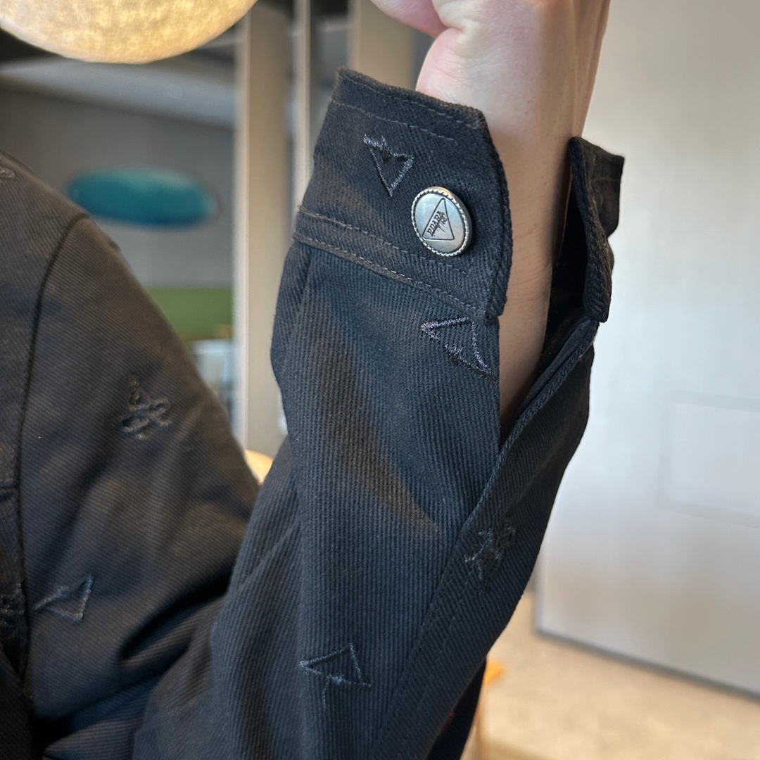 这款衣服是AAAAA 1:1 质量 (非常棒). 使用了和原版一模一样的材料. 商标部分也保持了和普拉达/Prada一样. 图片拍摄是实物衣服拍摄, 您所收到的实物保证和我们图片一模一样.