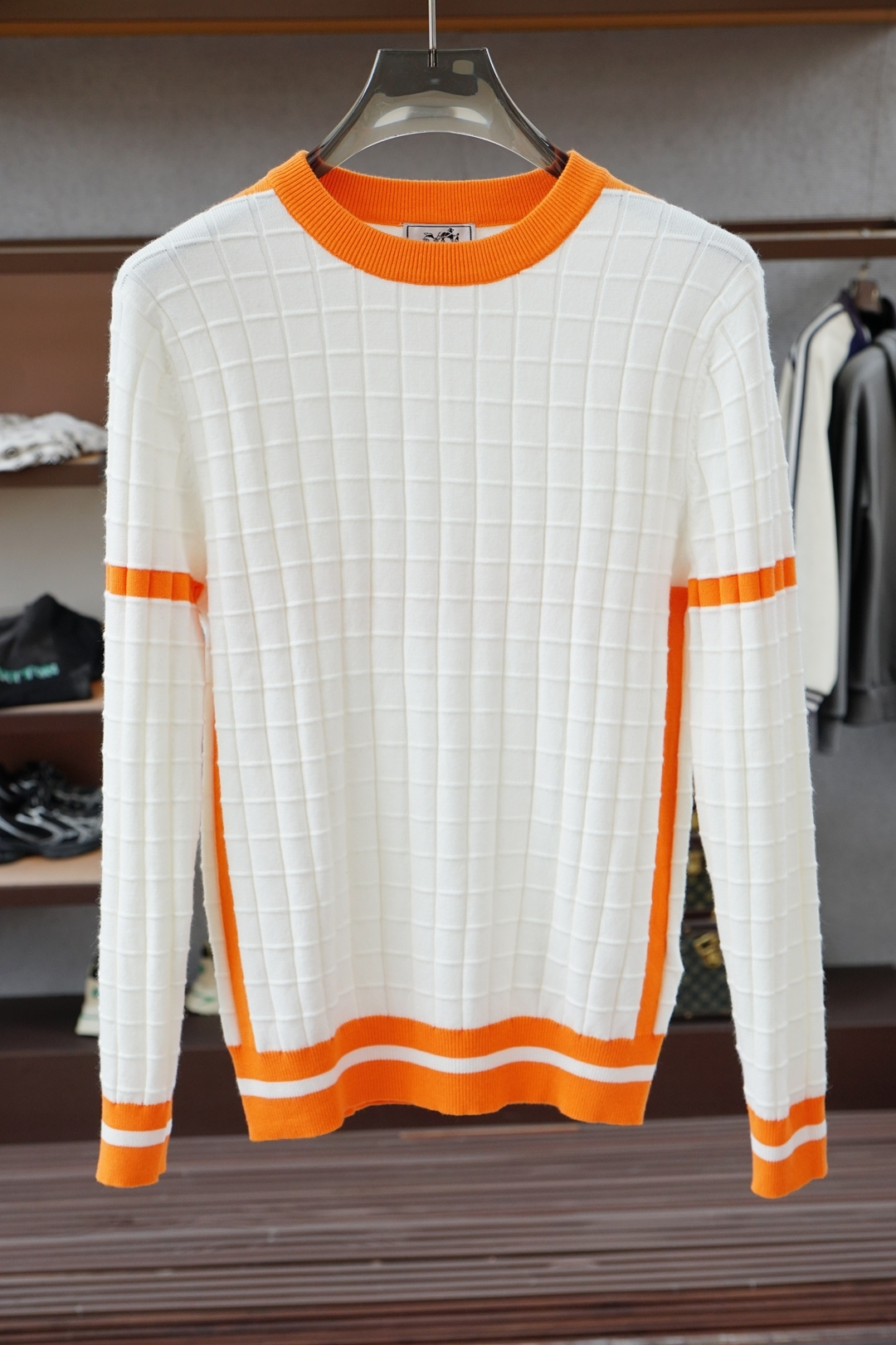 这款衣服是AAAAA 1:1 质量 (非常棒). 使用了和原版一模一样的材料. 商标部分也保持了和爱马仕/Hermes一样. 图片拍摄是实物衣服拍摄, 您所收到的实物保证和我们图片一模一样.