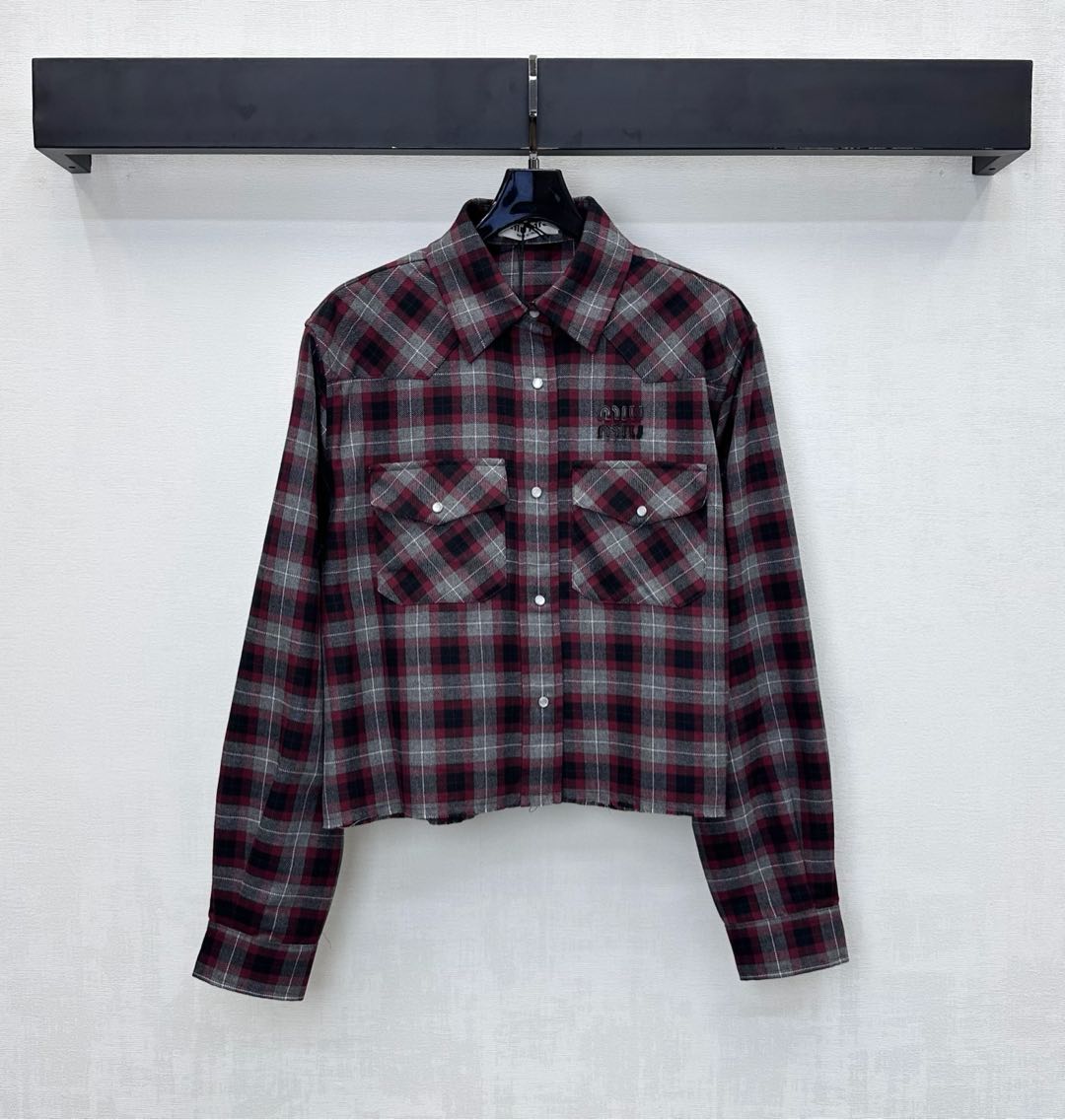 这款衣服是AAAAA 1:1 质量 (非常棒). 使用了和原版一模一样的材料. 商标部分也保持了和缪缪/Miu Miu一样. 图片拍摄是实物衣服拍摄, 您所收到的实物保证和我们图片一模一样.
