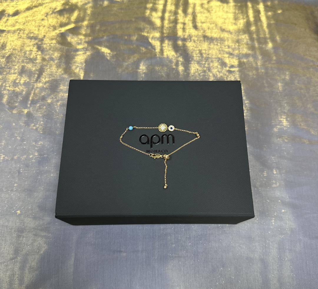 这款首饰是AAAAA 1:1 质量 (非常棒). 使用了和原版一模一样的材料. 商标部分也保持了和APM Monaco一样. 图片拍摄是实物首饰拍摄, 您所收到的实物保证和我们图片一模一样.
