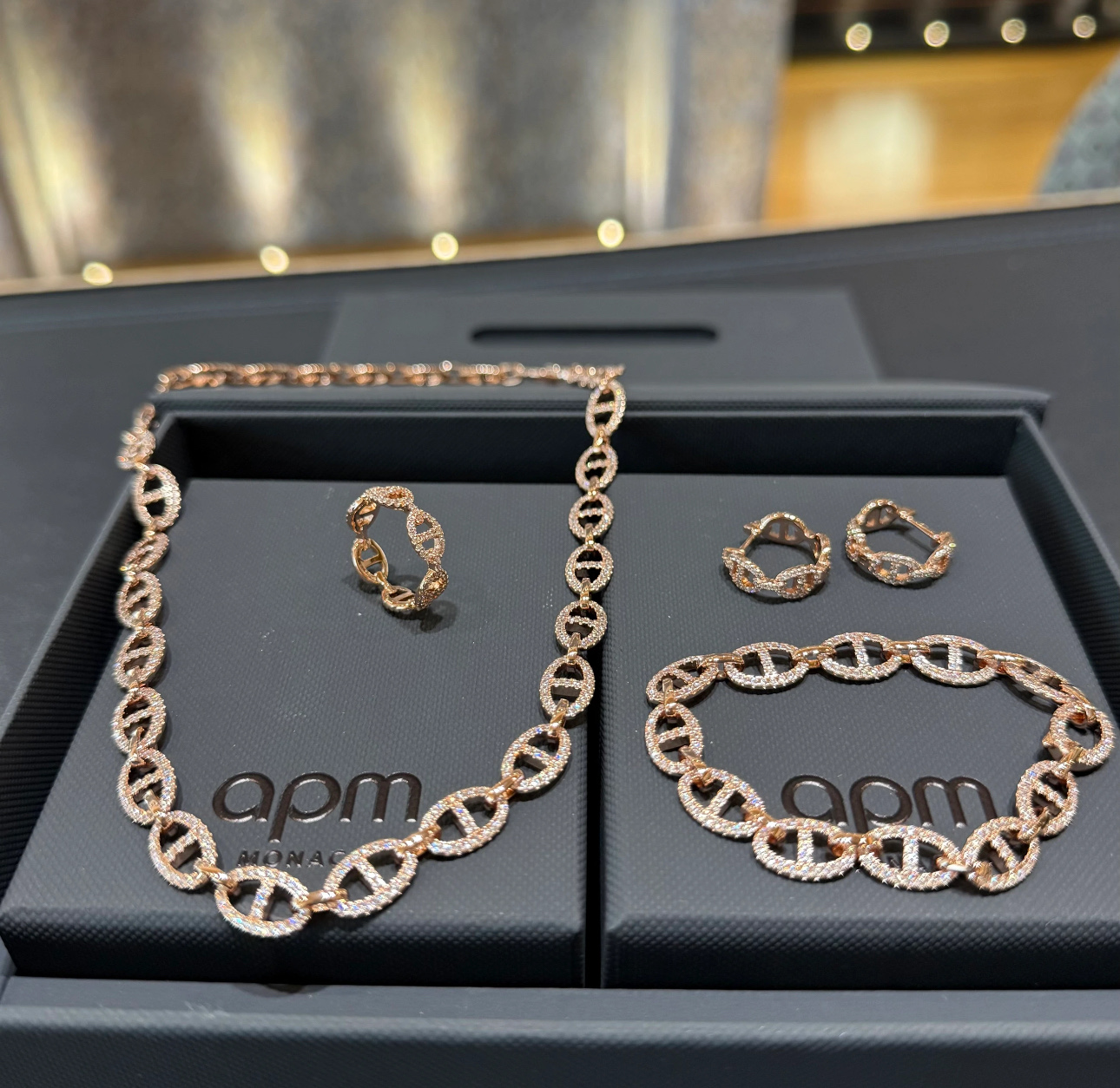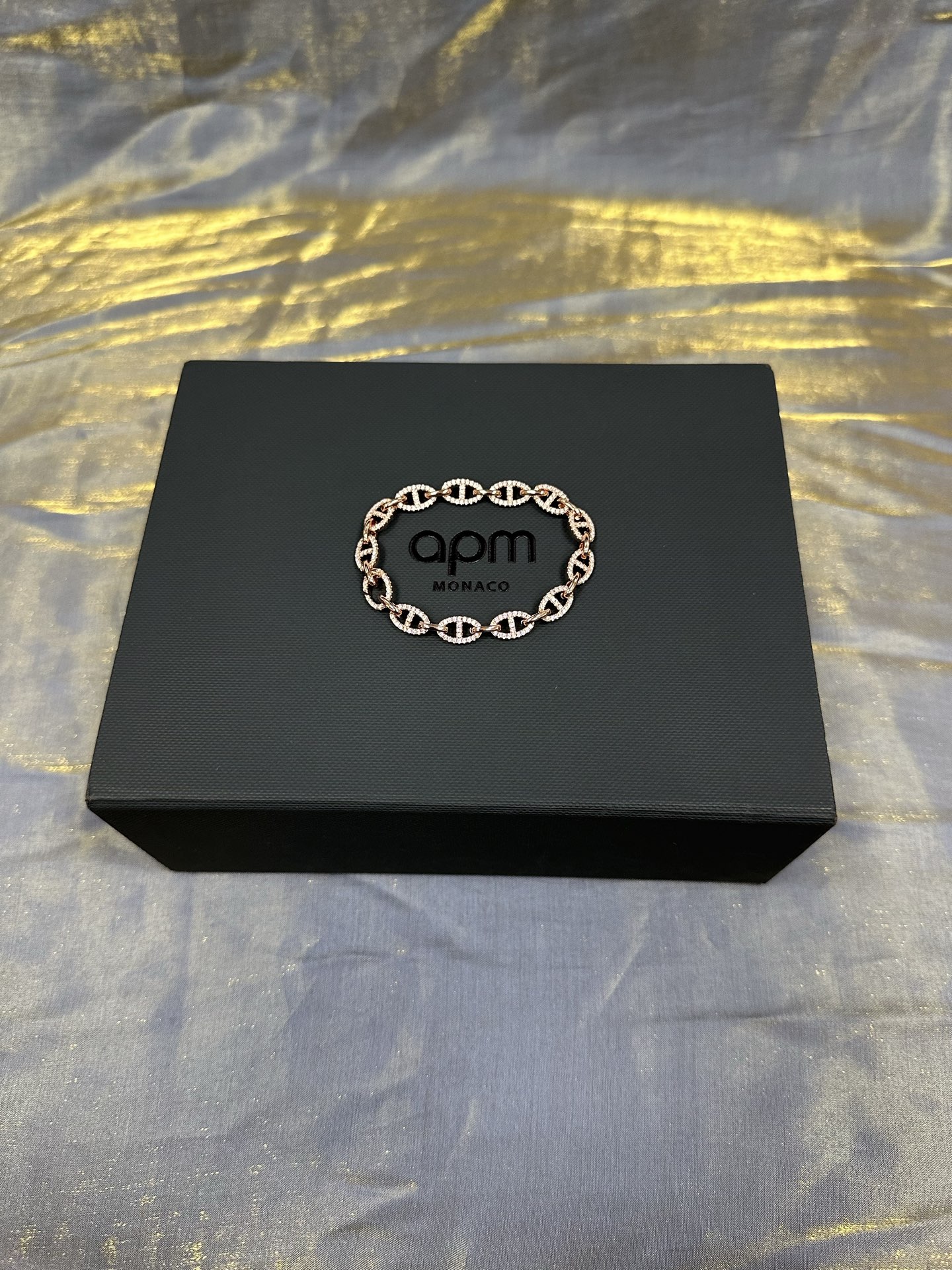 这款首饰是AAAAA 1:1 质量 (非常棒). 使用了和原版一模一样的材料. 商标部分也保持了和APM Monaco一样. 图片拍摄是实物首饰拍摄, 您所收到的实物保证和我们图片一模一样.
