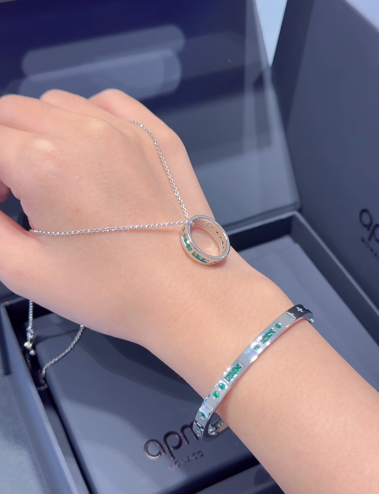 这款首饰是AAAAA 1:1 质量 (非常棒). 使用了和原版一模一样的材料. 商标部分也保持了和APM Monaco一样. 图片拍摄是实物首饰拍摄, 您所收到的实物保证和我们图片一模一样.