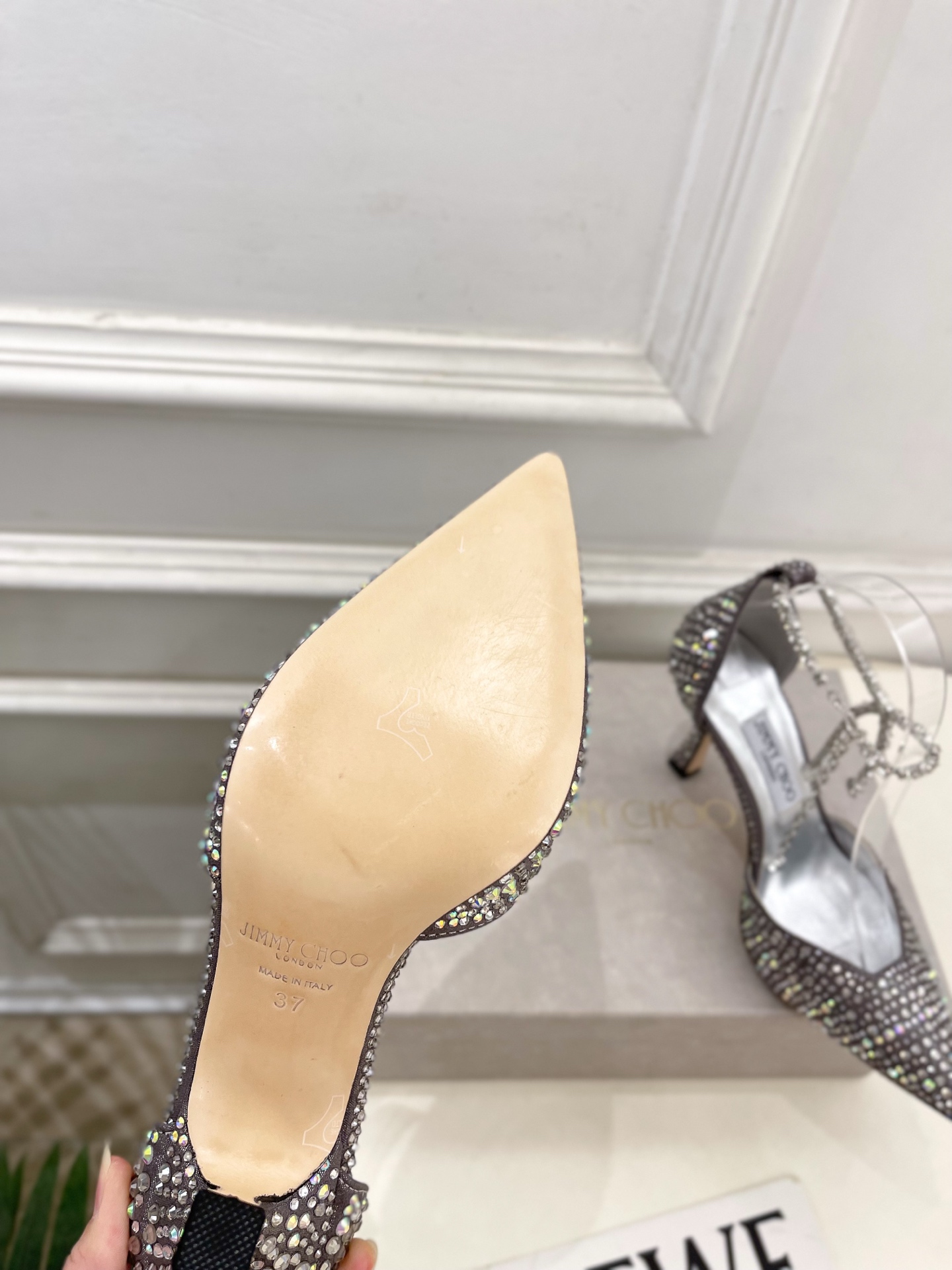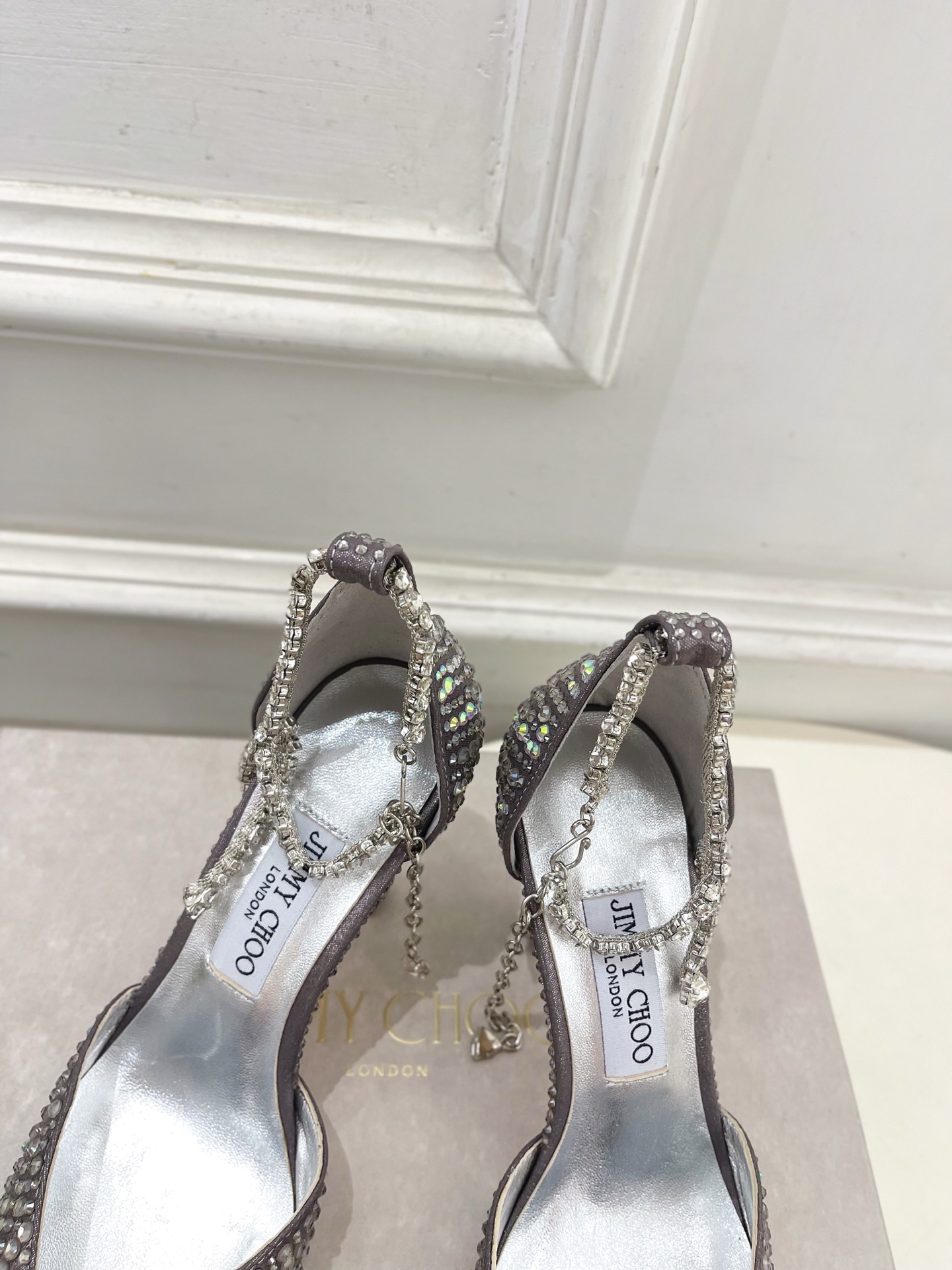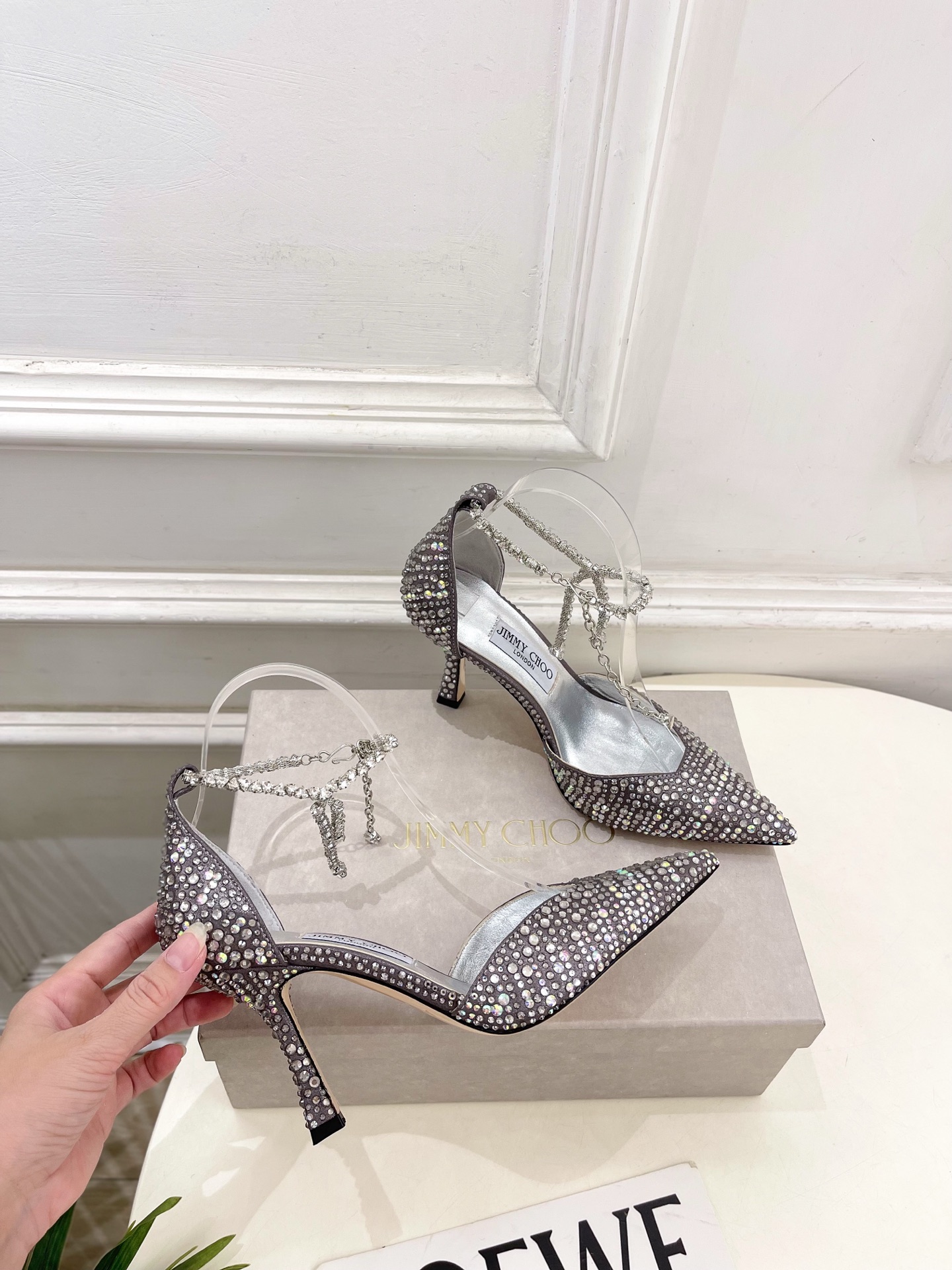 这款鞋子是AAAAA 1:1 质量 (非常棒). 使用了和原版一模一样的材料. 商标部分也保持了和吉米乔/JIMMY CHOO一样. 图片拍摄是实物鞋子拍摄, 您所收到的实物保证和我们图片一模一样.