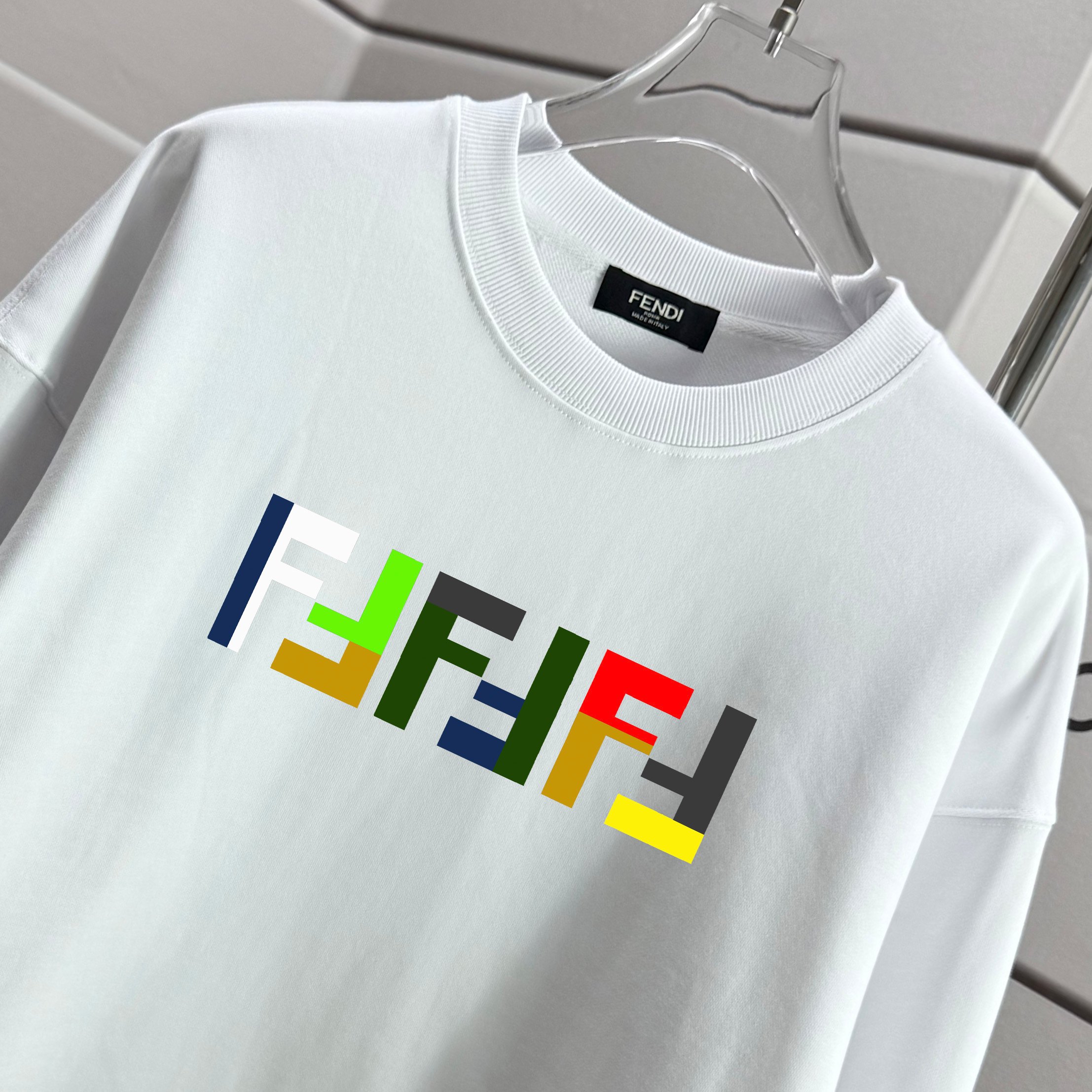 这款衣服是AAAAA 1:1 质量 (非常棒). 使用了和原版一模一样的材料. 商标部分也保持了和芬迪/Fendi一样. 图片拍摄是实物衣服拍摄, 您所收到的实物保证和我们图片一模一样.
