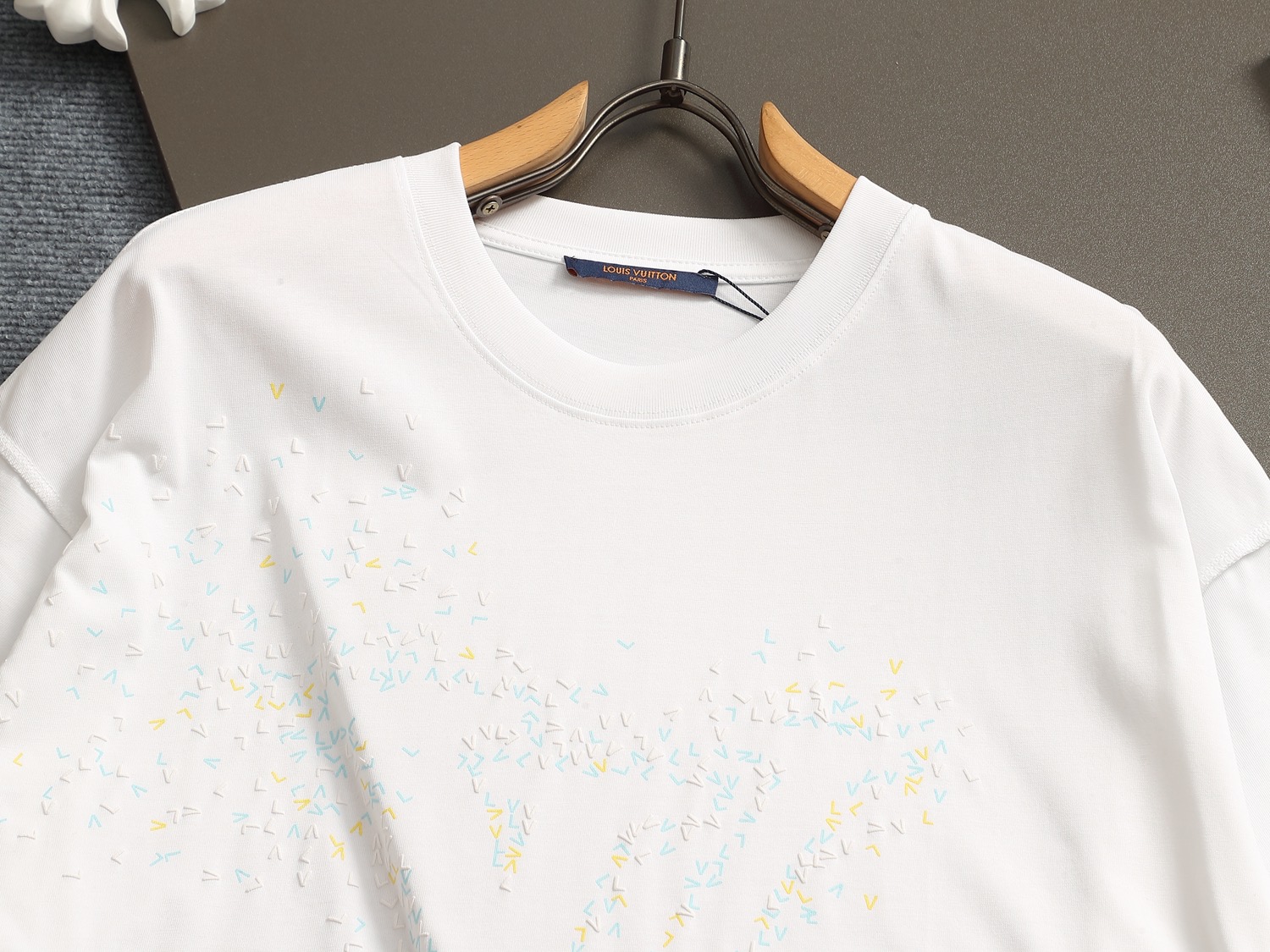 这款衣服是AAAAA 1:1 质量 (非常棒). 使用了和原版一模一样的材料. 商标部分也保持了和路易威登/Louis Vuitton一样. 图片拍摄是实物衣服拍摄, 您所收到的实物保证和我们图片一模一样.
