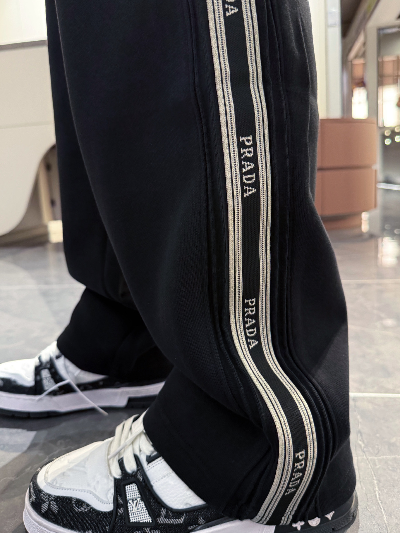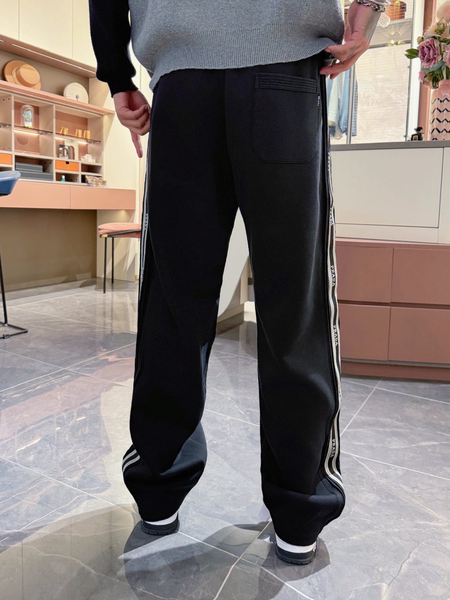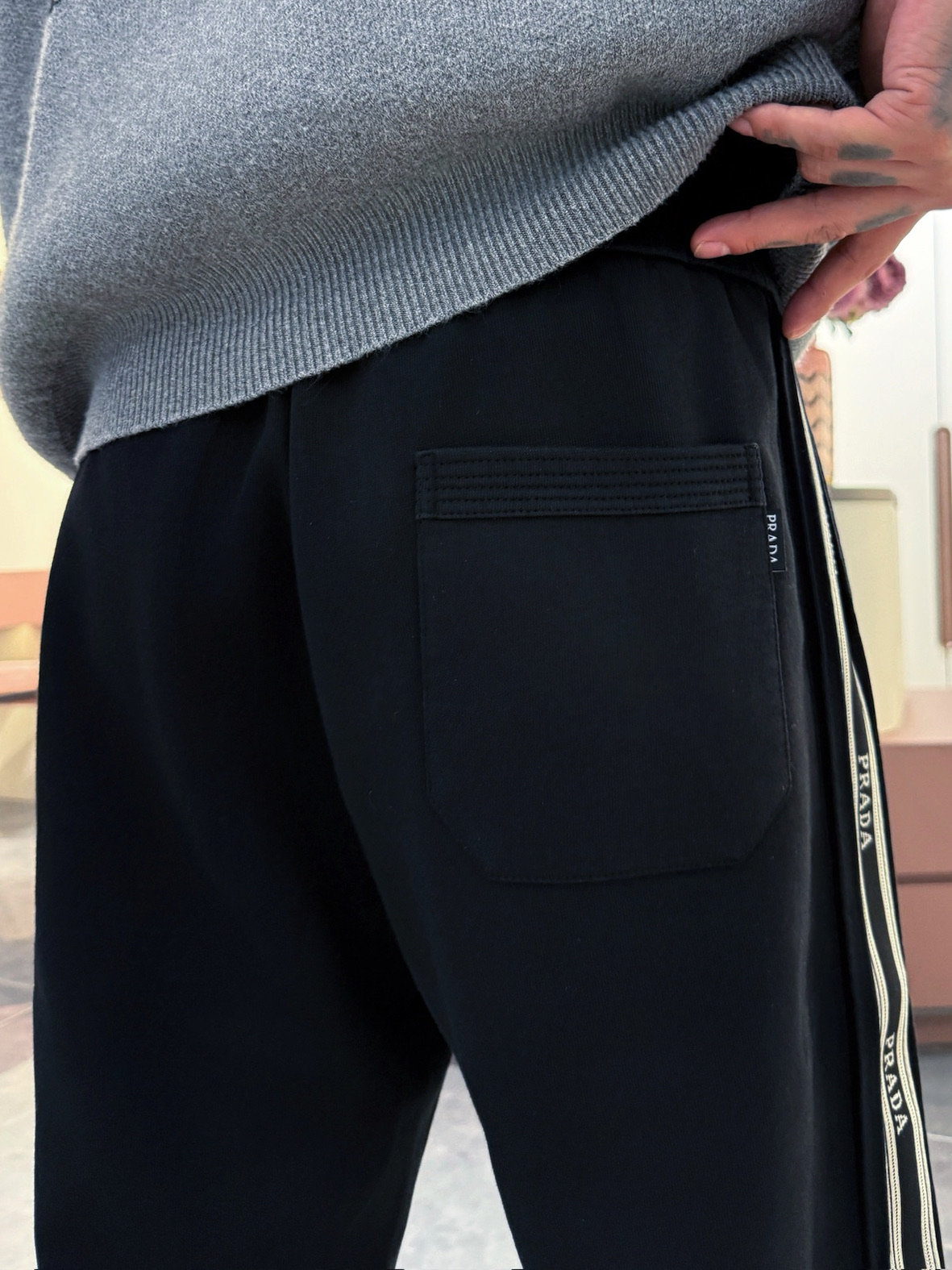 这款衣服是AAAAA 1:1 质量 (非常棒). 使用了和原版一模一样的材料. 商标部分也保持了和普拉达/Prada一样. 图片拍摄是实物衣服拍摄, 您所收到的实物保证和我们图片一模一样.