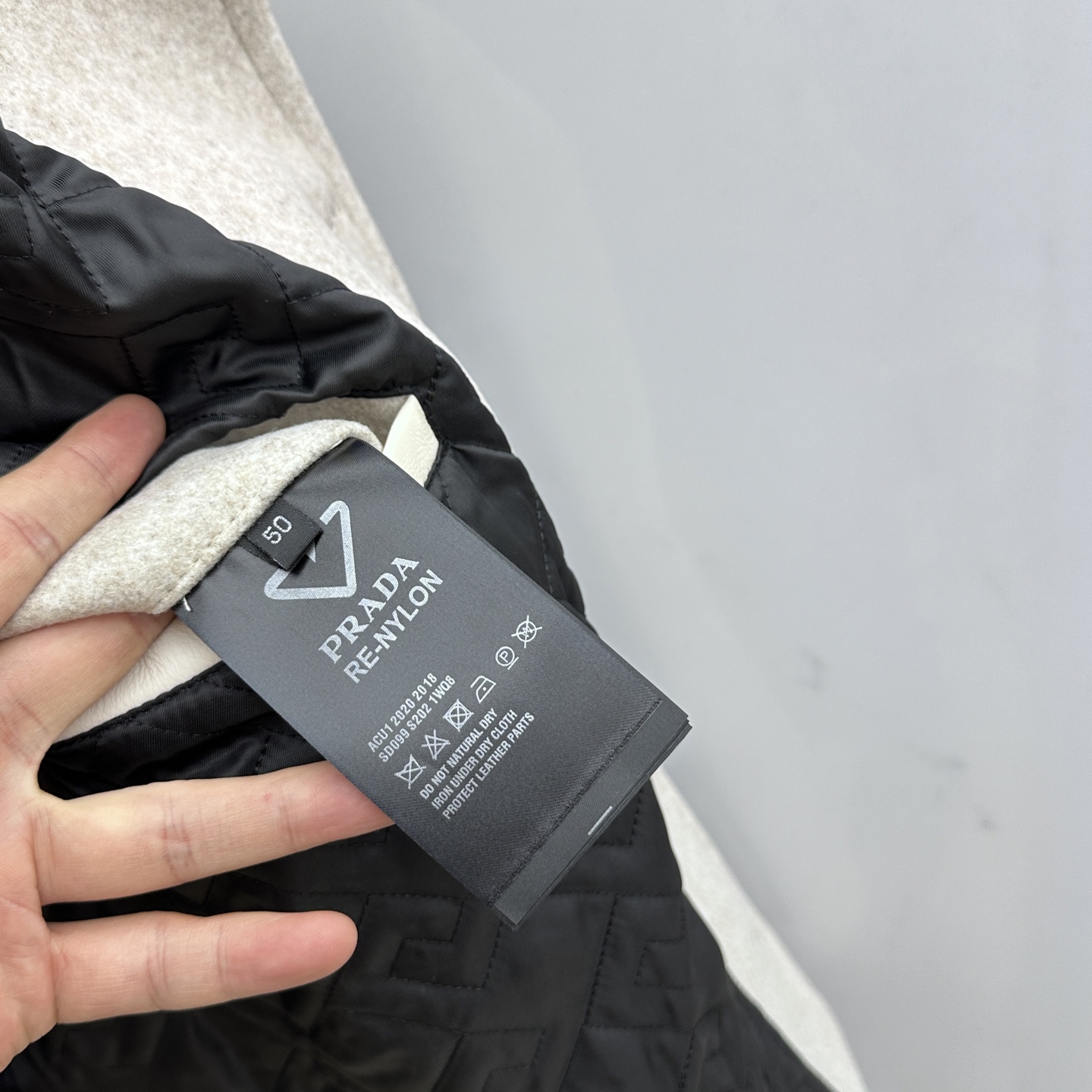 这款衣服是AAAAA 1:1 质量 (非常棒). 使用了和原版一模一样的材料. 商标部分也保持了和普拉达/Prada一样. 图片拍摄是实物衣服拍摄, 您所收到的实物保证和我们图片一模一样.