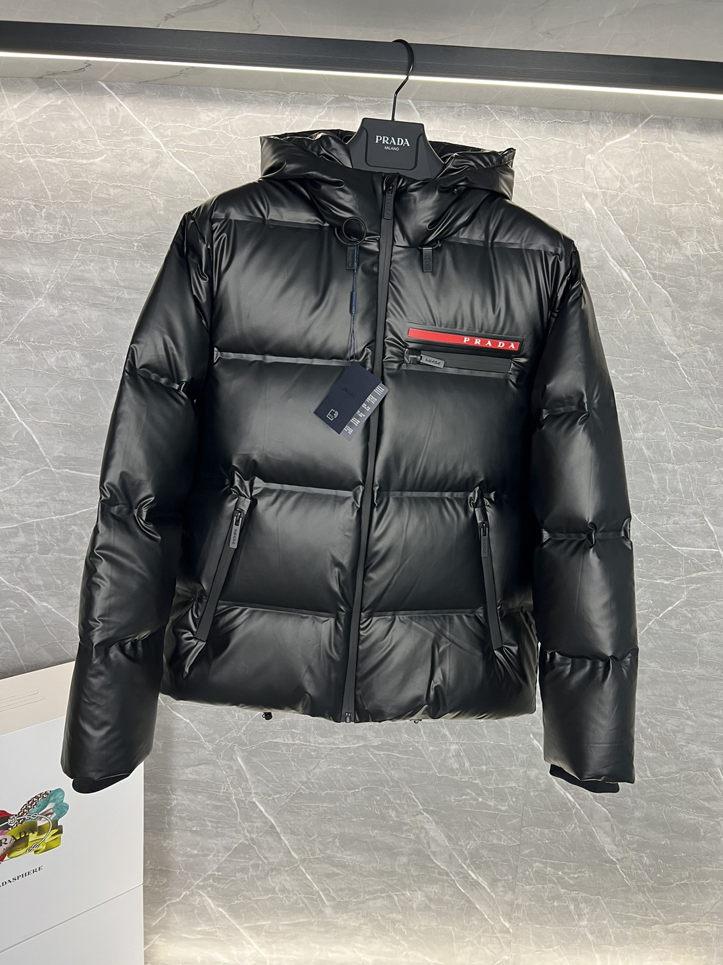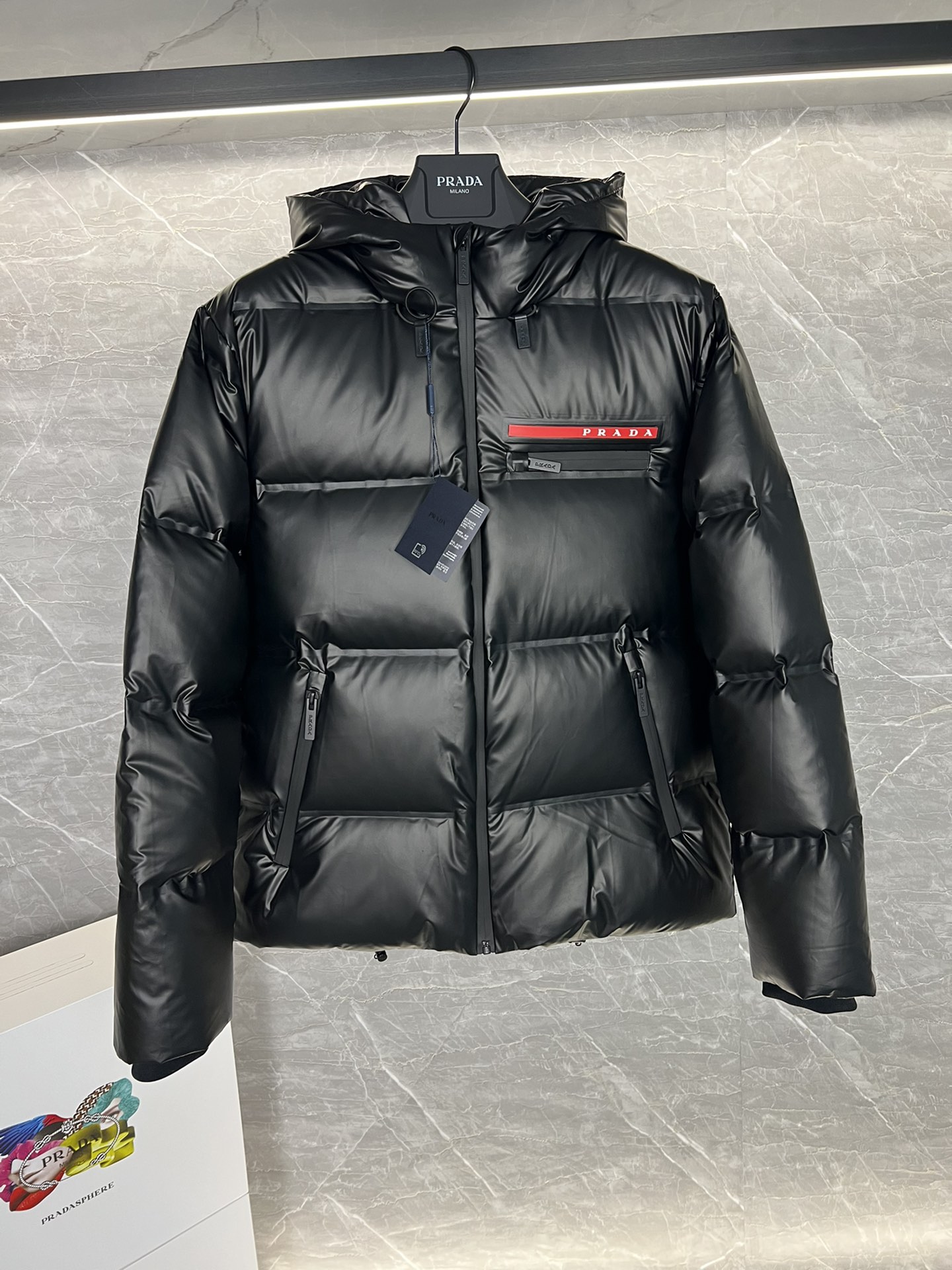 这款衣服是AAAAA 1:1 质量 (非常棒). 使用了和原版一模一样的材料. 商标部分也保持了和普拉达/Prada一样. 图片拍摄是实物衣服拍摄, 您所收到的实物保证和我们图片一模一样.
