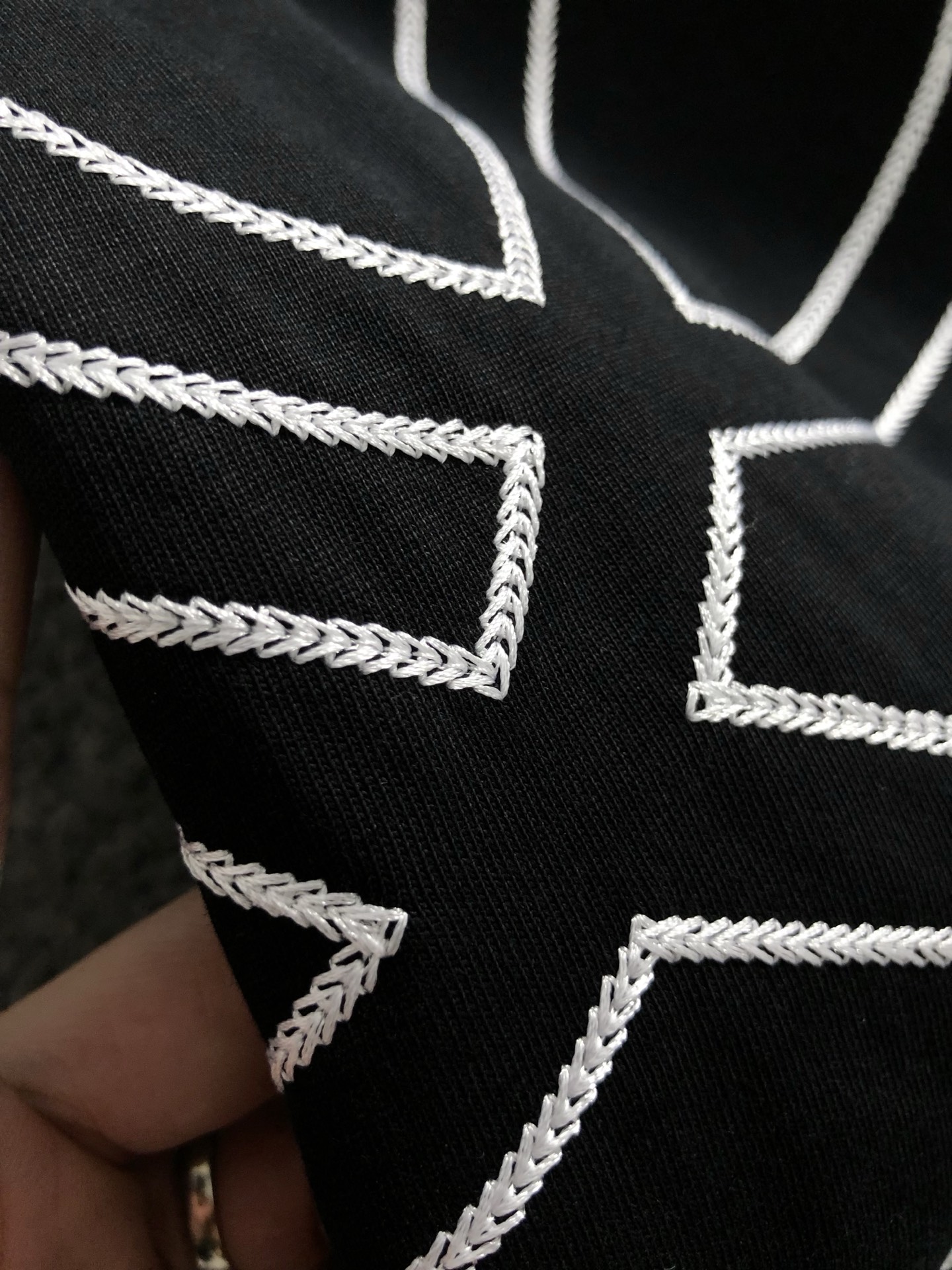 这款衣服是AAAAA 1:1 质量 (非常棒). 使用了和原版一模一样的材料. 商标部分也保持了和Fashion一样. 图片拍摄是实物衣服拍摄, 您所收到的实物保证和我们图片一模一样.
