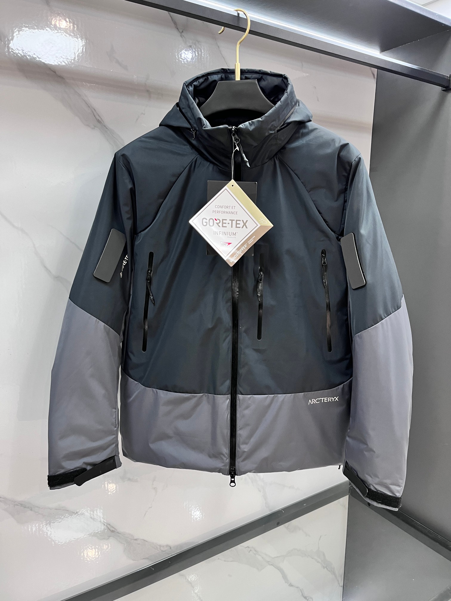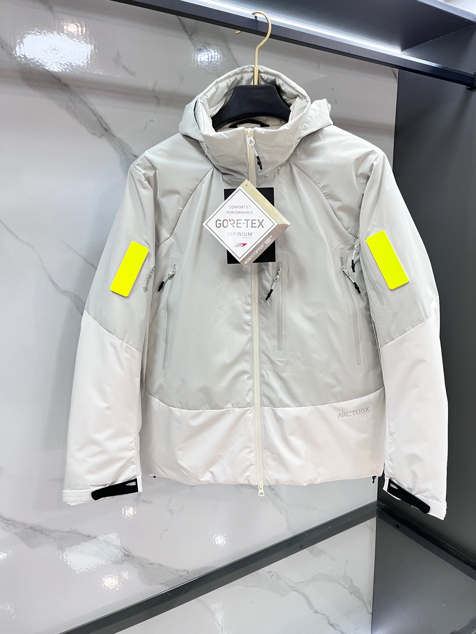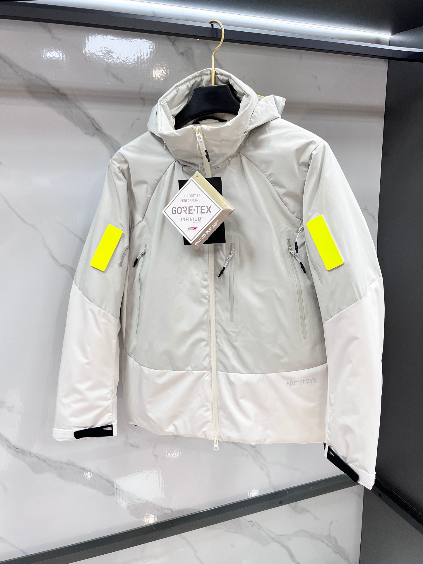 这款衣服是AAAAA 1:1 质量 (非常棒). 使用了和原版一模一样的材料. 商标部分也保持了和ARC'TERYX一样. 图片拍摄是实物衣服拍摄, 您所收到的实物保证和我们图片一模一样.