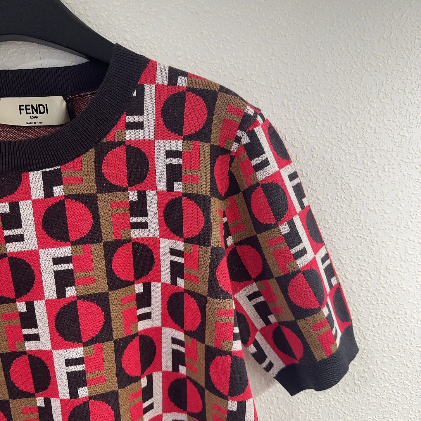 这款衣服是AAAAA 1:1 质量 (非常棒). 使用了和原版一模一样的材料. 商标部分也保持了和芬迪/Fendi一样. 图片拍摄是实物衣服拍摄, 您所收到的实物保证和我们图片一模一样.