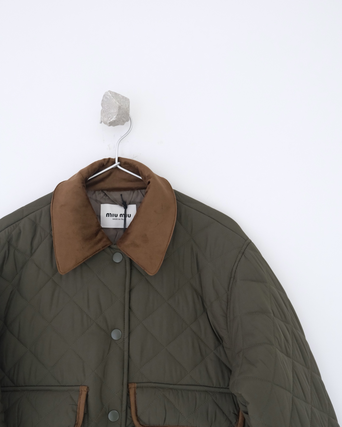 这款衣服是AAAAA 1:1 质量 (非常棒). 使用了和原版一模一样的材料. 商标部分也保持了和缪缪/Miu Miu一样. 图片拍摄是实物衣服拍摄, 您所收到的实物保证和我们图片一模一样.