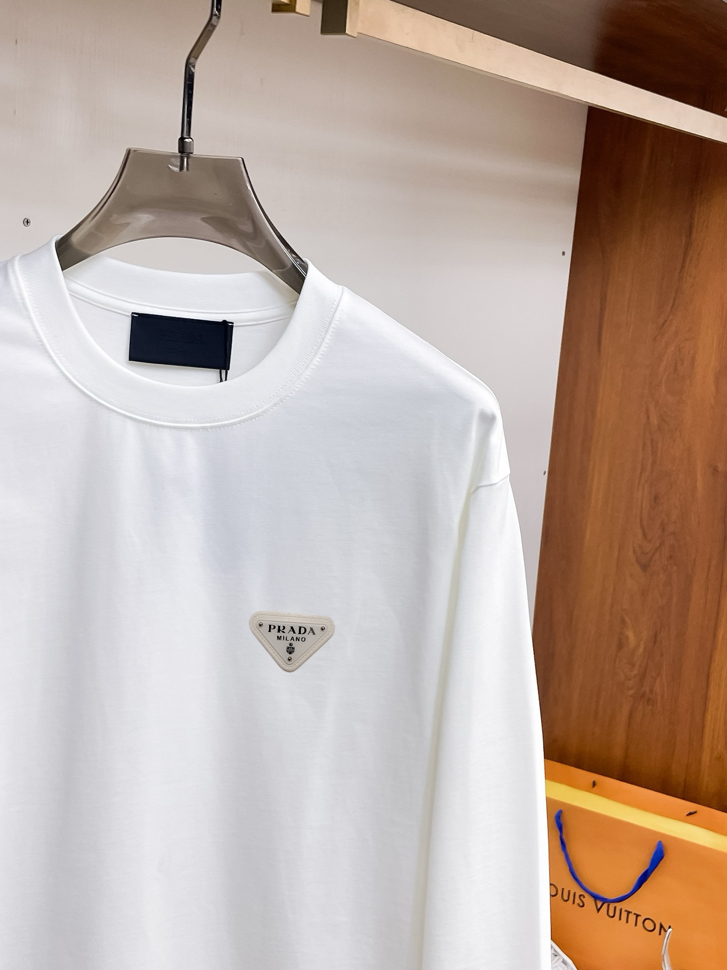 这款衣服是AAAAA 1:1 质量 (非常棒). 使用了和原版一模一样的材料. 商标部分也保持了和普拉达/Prada一样. 图片拍摄是实物衣服拍摄, 您所收到的实物保证和我们图片一模一样.