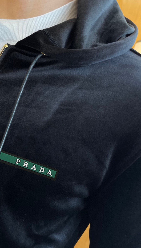 这款衣服是AAAAA 1:1 质量 (非常棒). 使用了和原版一模一样的材料. 商标部分也保持了和普拉达/Prada一样. 图片拍摄是实物衣服拍摄, 您所收到的实物保证和我们图片一模一样.