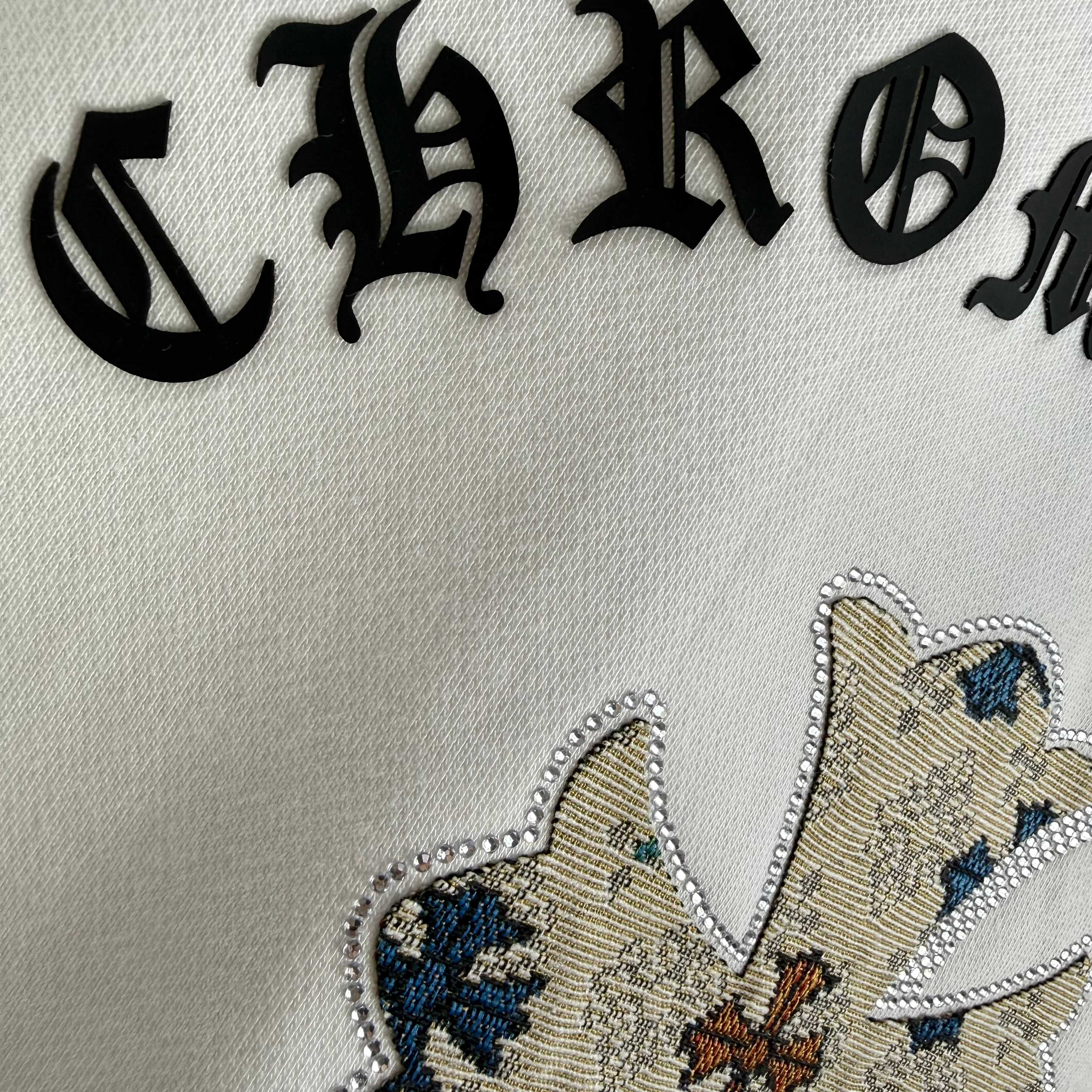 这款衣服是AAAAA 1:1 质量 (非常棒). 使用了和原版一模一样的材料. 商标部分也保持了和克罗心/Chrome Hearts一样. 图片拍摄是实物衣服拍摄, 您所收到的实物保证和我们图片一模一样.