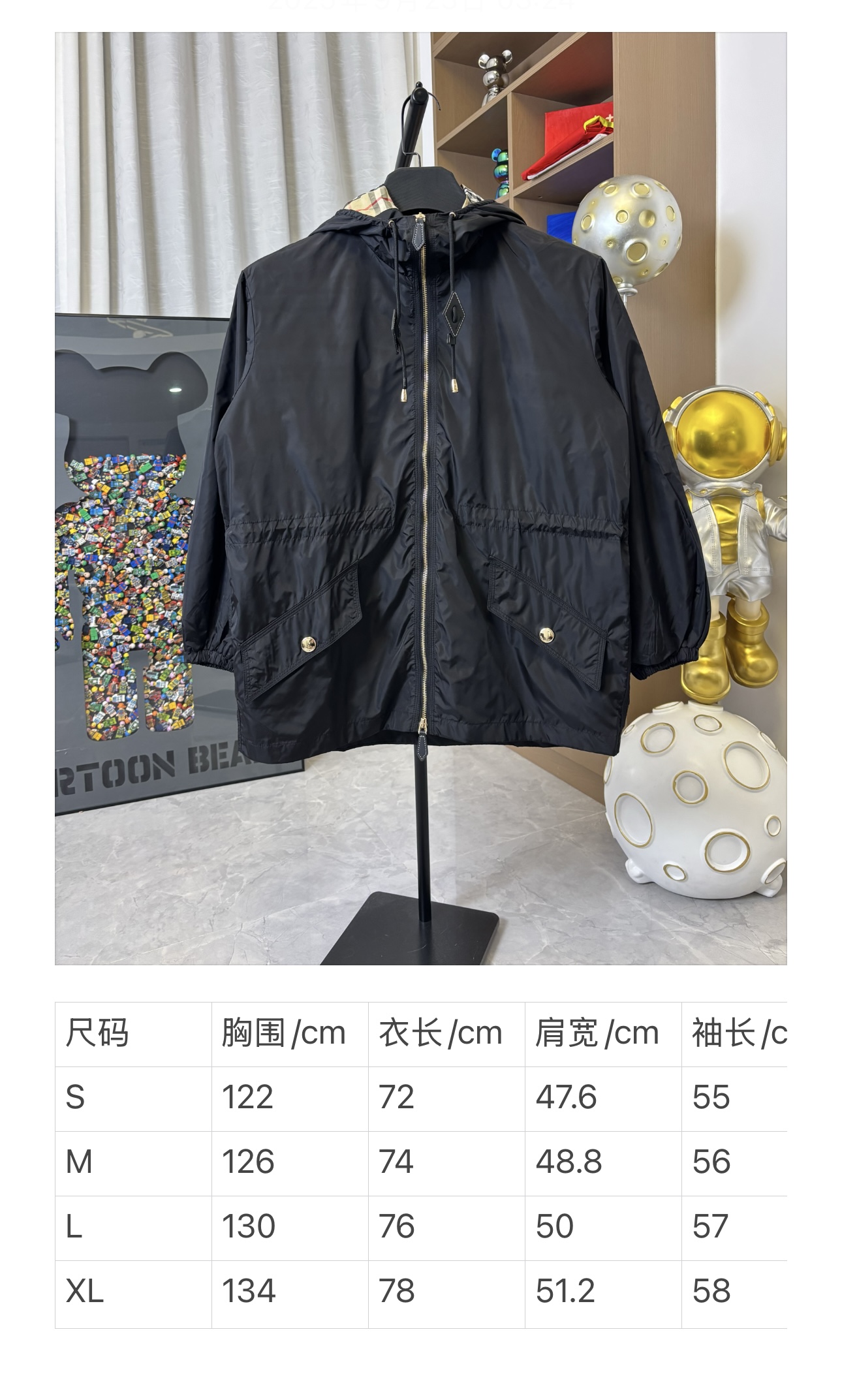 这款衣服是AAAAA 1:1 质量 (非常棒). 使用了和原版一模一样的材料. 商标部分也保持了和巴宝莉/Burberry一样. 图片拍摄是实物衣服拍摄, 您所收到的实物保证和我们图片一模一样.