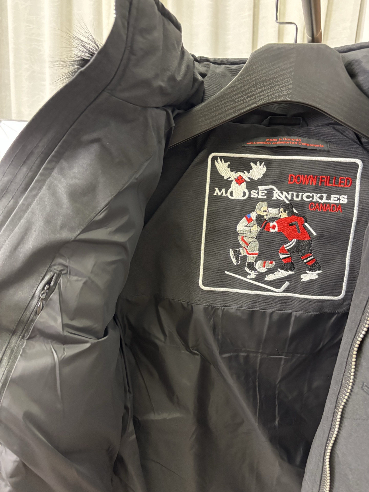 这款衣服是AAAAA 1:1 质量 (非常棒). 使用了和原版一模一样的材料. 商标部分也保持了和盟可睐/moncler一样. 图片拍摄是实物衣服拍摄, 您所收到的实物保证和我们图片一模一样.