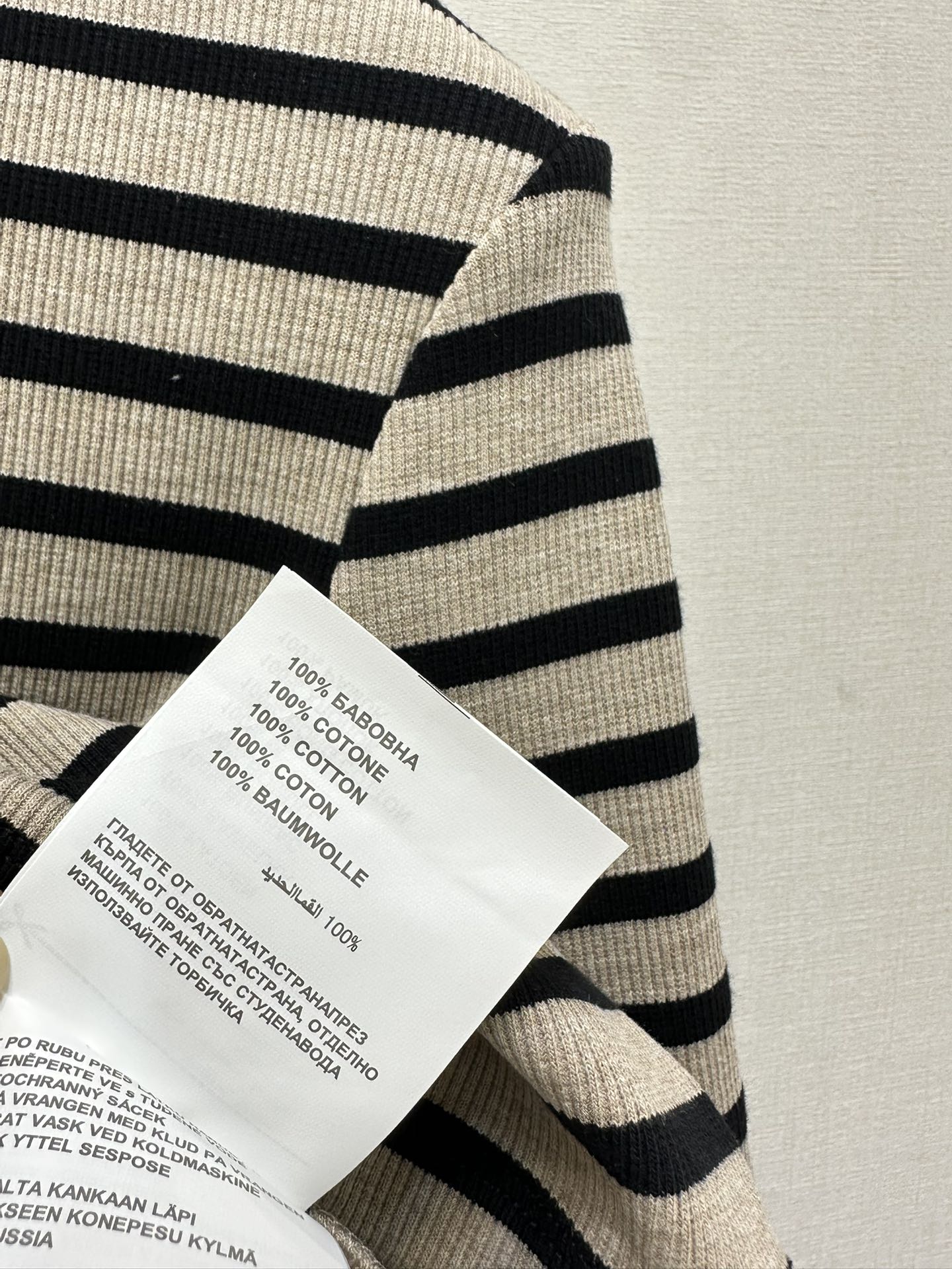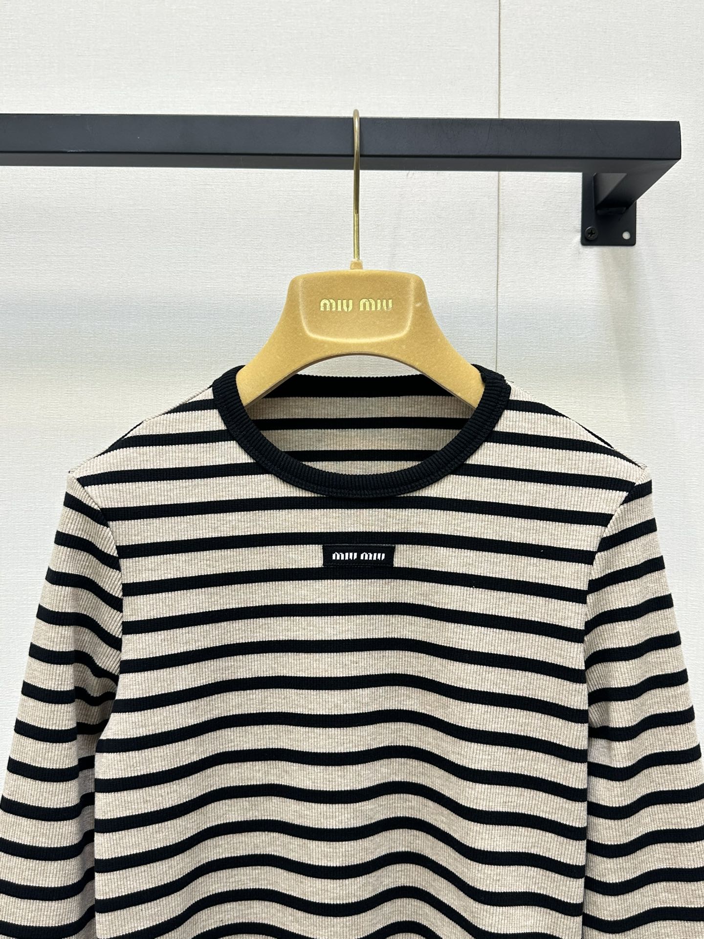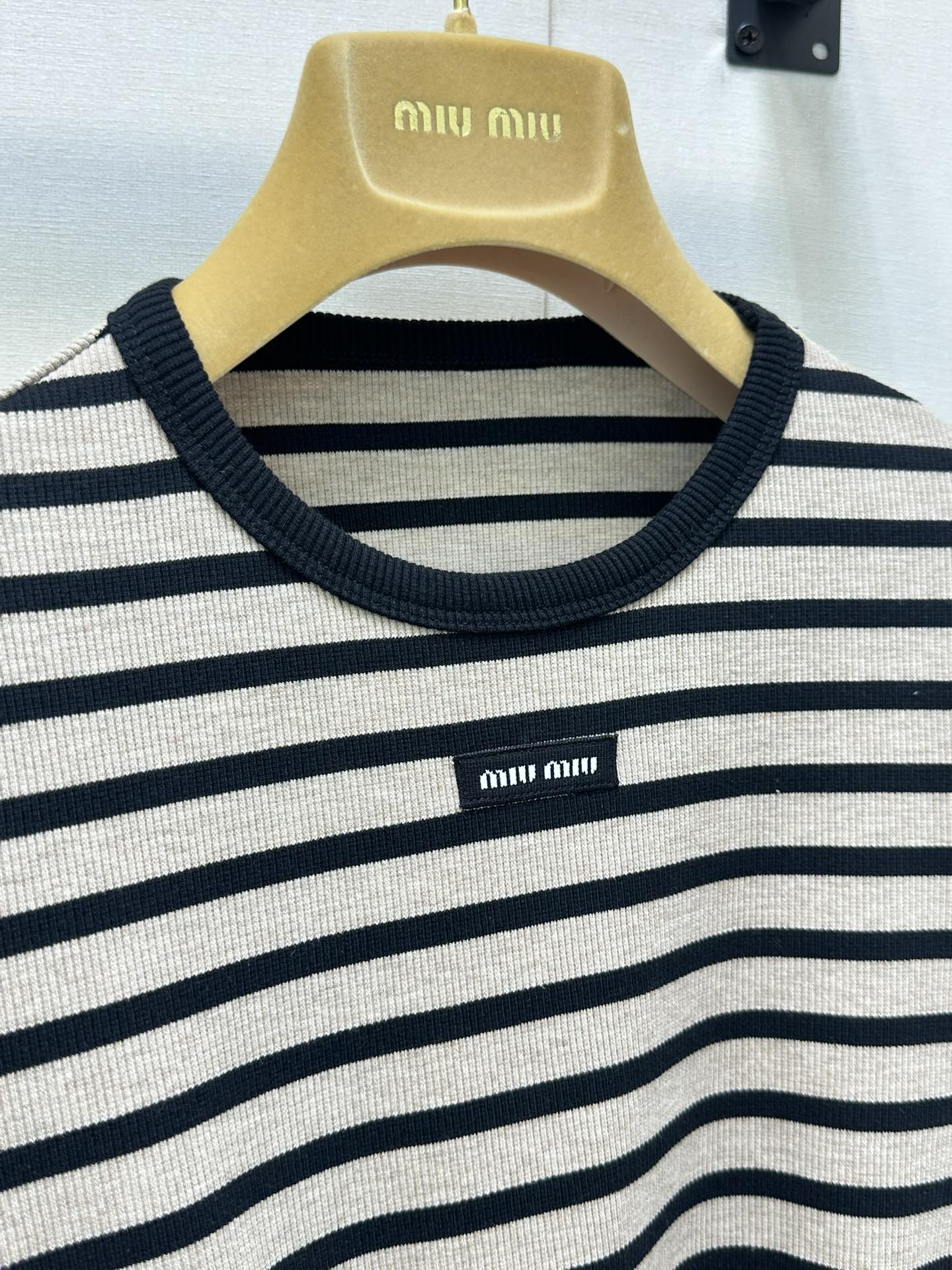 这款衣服是AAAAA 1:1 质量 (非常棒). 使用了和原版一模一样的材料. 商标部分也保持了和缪缪/Miu Miu一样. 图片拍摄是实物衣服拍摄, 您所收到的实物保证和我们图片一模一样.
