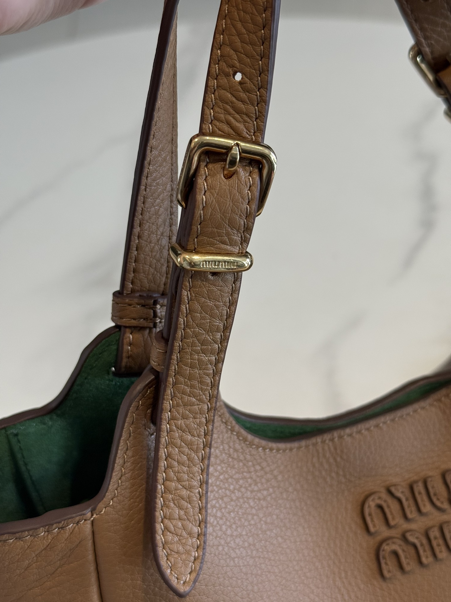这款包包是AAAAA 1:1 质量 (非常棒). 使用了和原版一模一样的材料. 商标部分也保持了和缪缪/Miu Miu一样. 图片拍摄是实物包包拍摄, 您所收到的实物保证和我们图片一模一样.