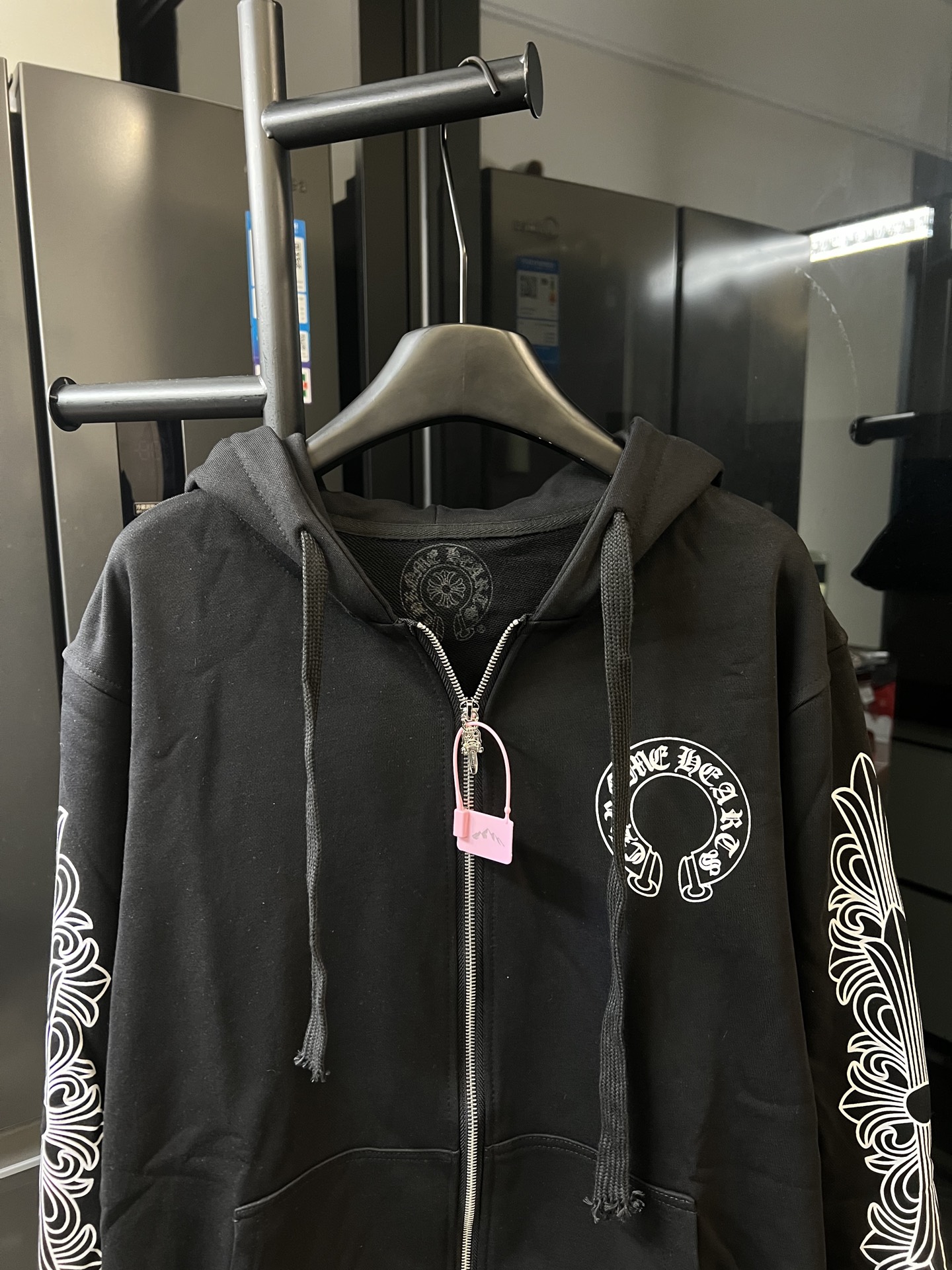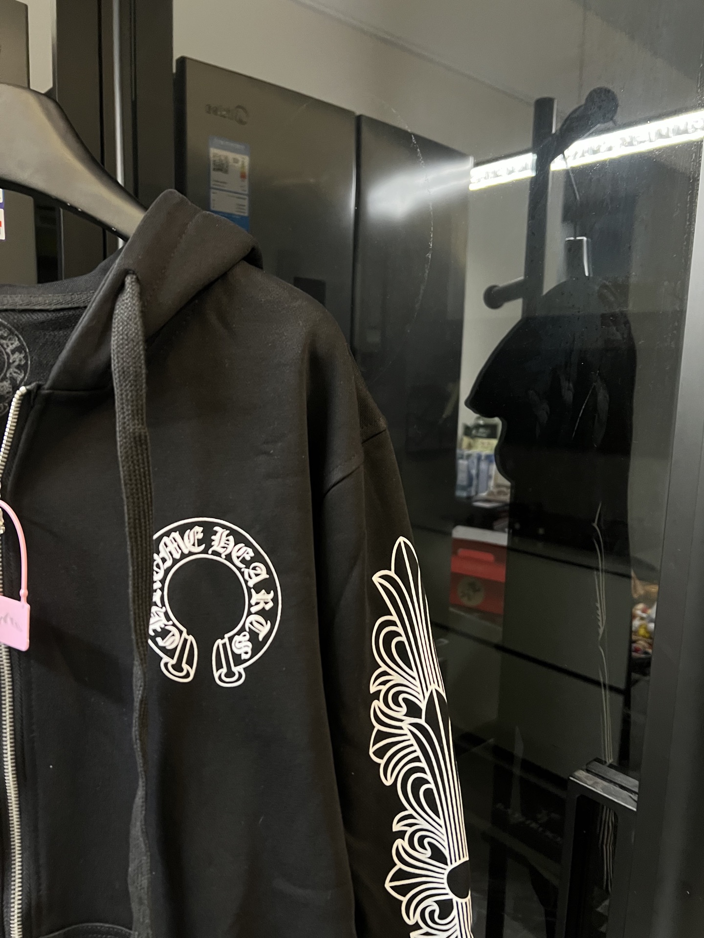 这款衣服是AAAAA 1:1 质量 (非常棒). 使用了和原版一模一样的材料. 商标部分也保持了和克罗心/Chrome Hearts一样. 图片拍摄是实物衣服拍摄, 您所收到的实物保证和我们图片一模一样.