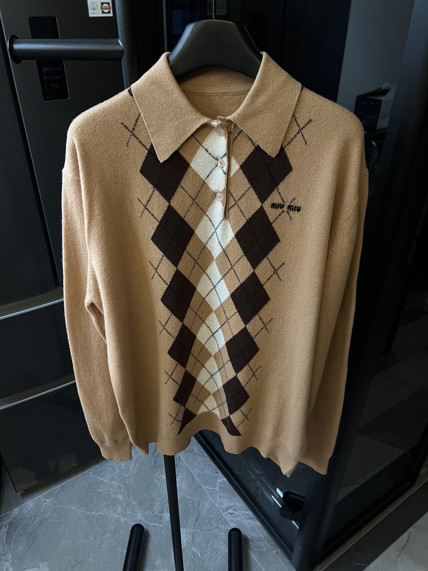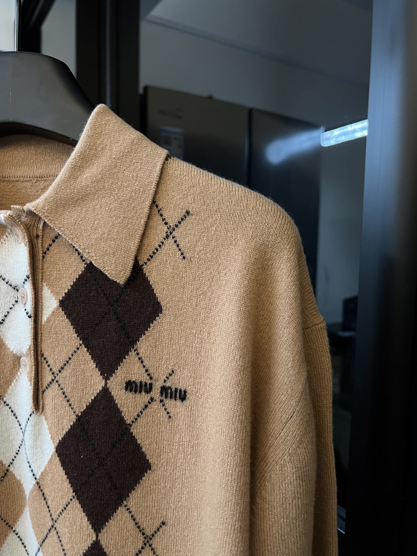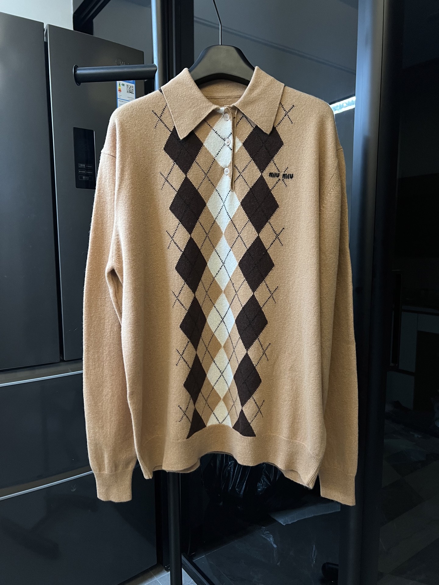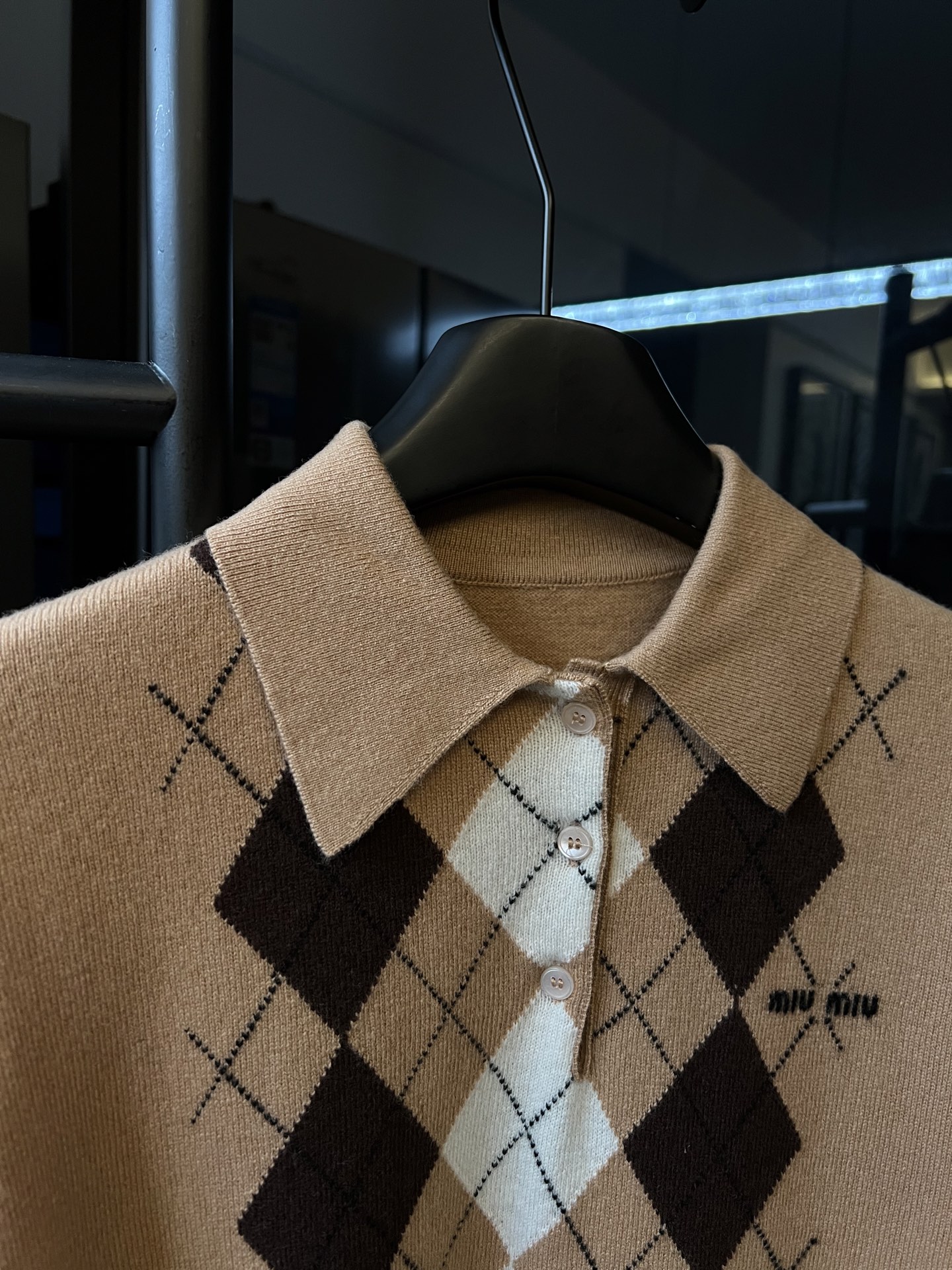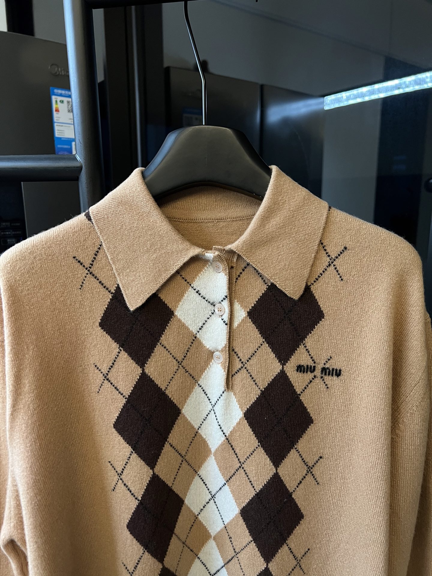 这款衣服是AAAAA 1:1 质量 (非常棒). 使用了和原版一模一样的材料. 商标部分也保持了和缪缪/Miu Miu一样. 图片拍摄是实物衣服拍摄, 您所收到的实物保证和我们图片一模一样.