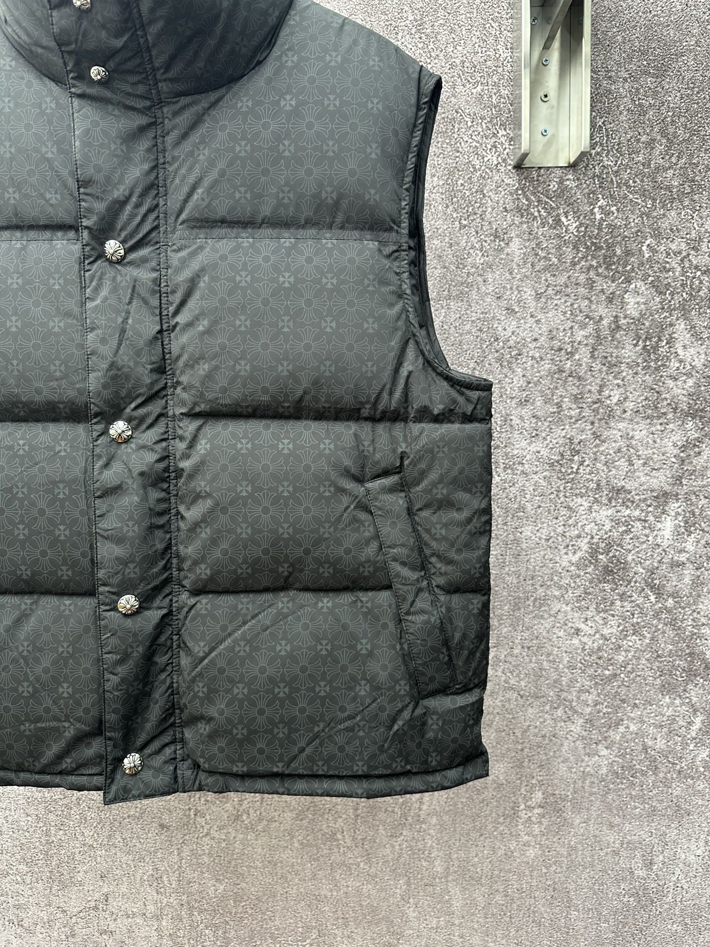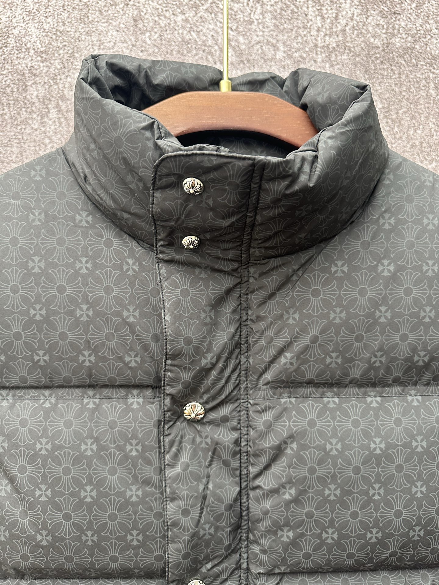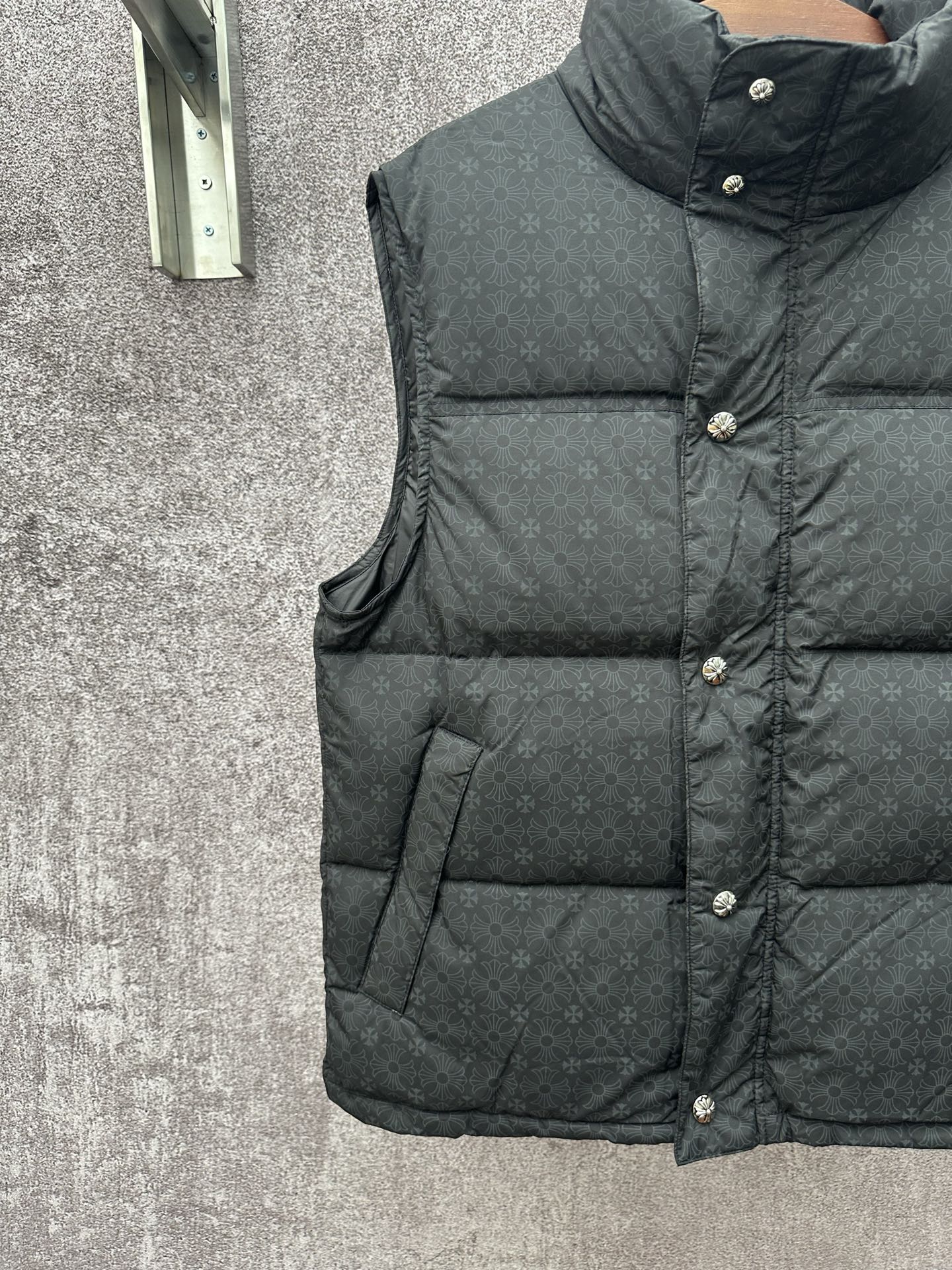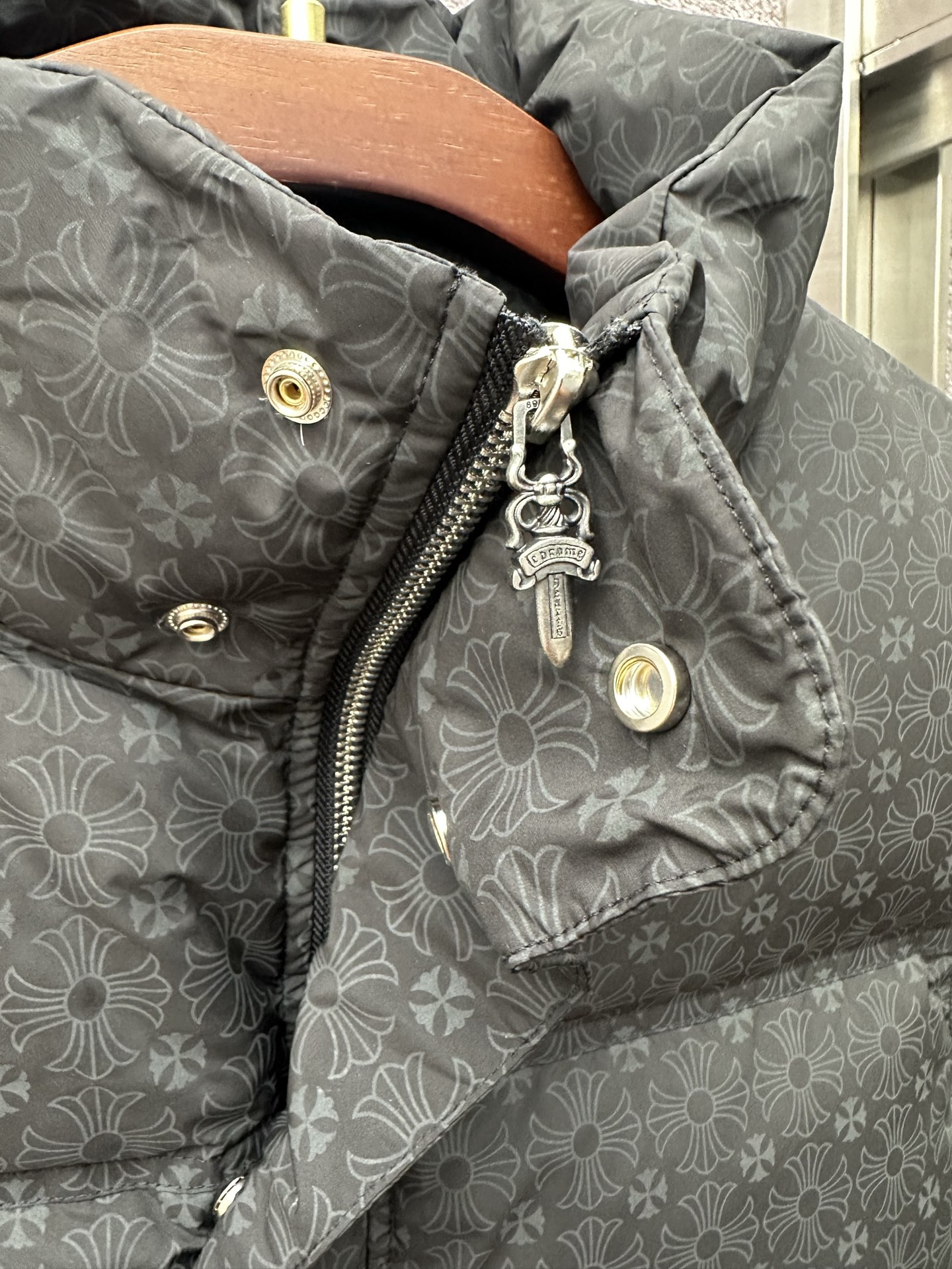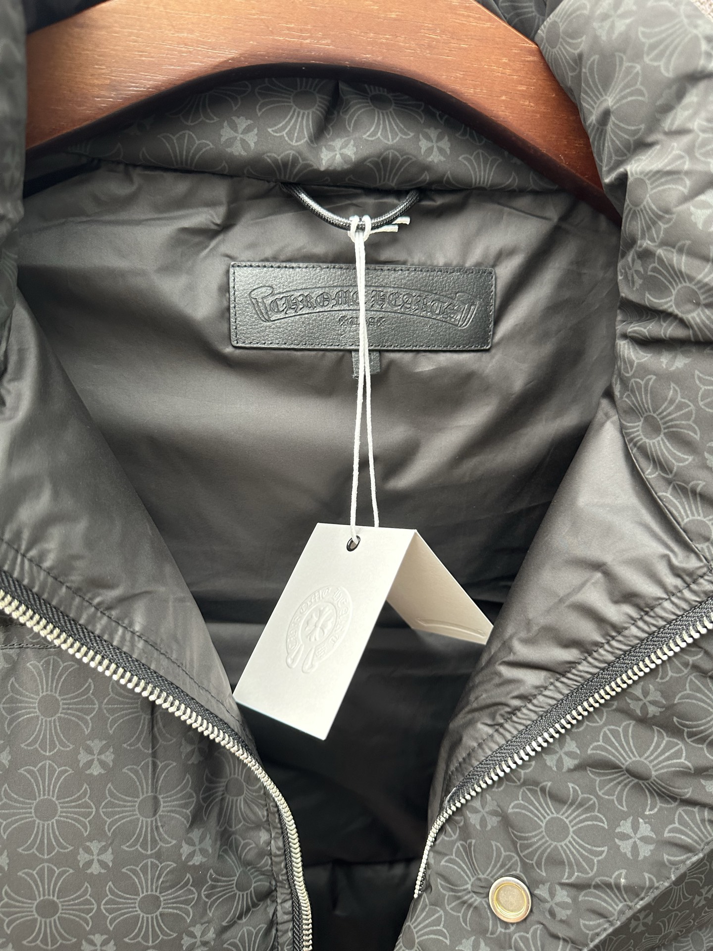 这款衣服是AAAAA 1:1 质量 (非常棒). 使用了和原版一模一样的材料. 商标部分也保持了和克罗心/Chrome Hearts一样. 图片拍摄是实物衣服拍摄, 您所收到的实物保证和我们图片一模一样.