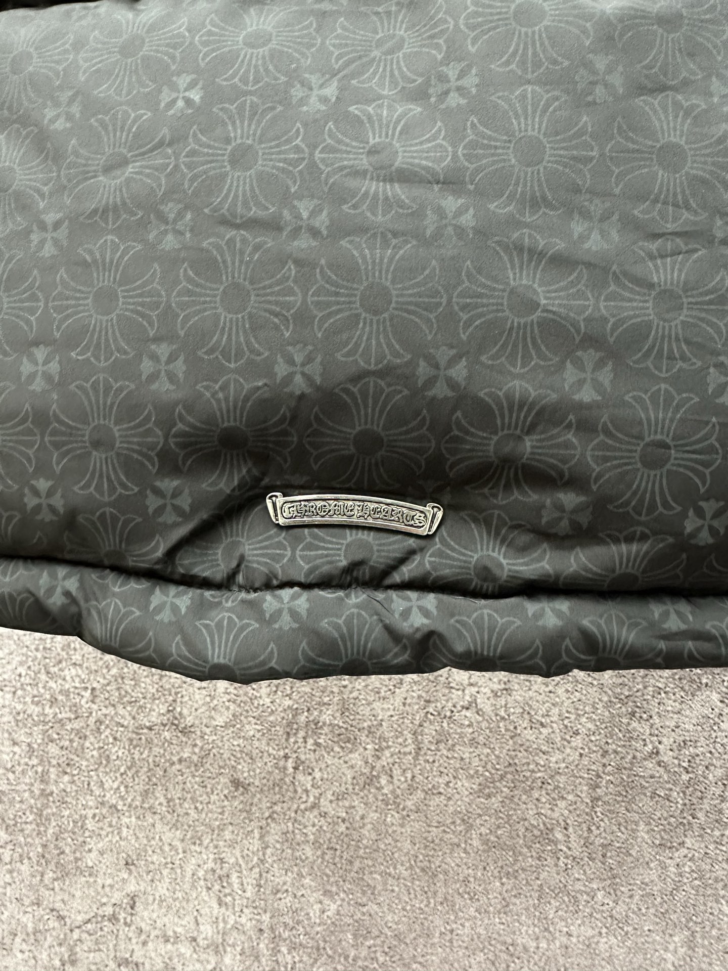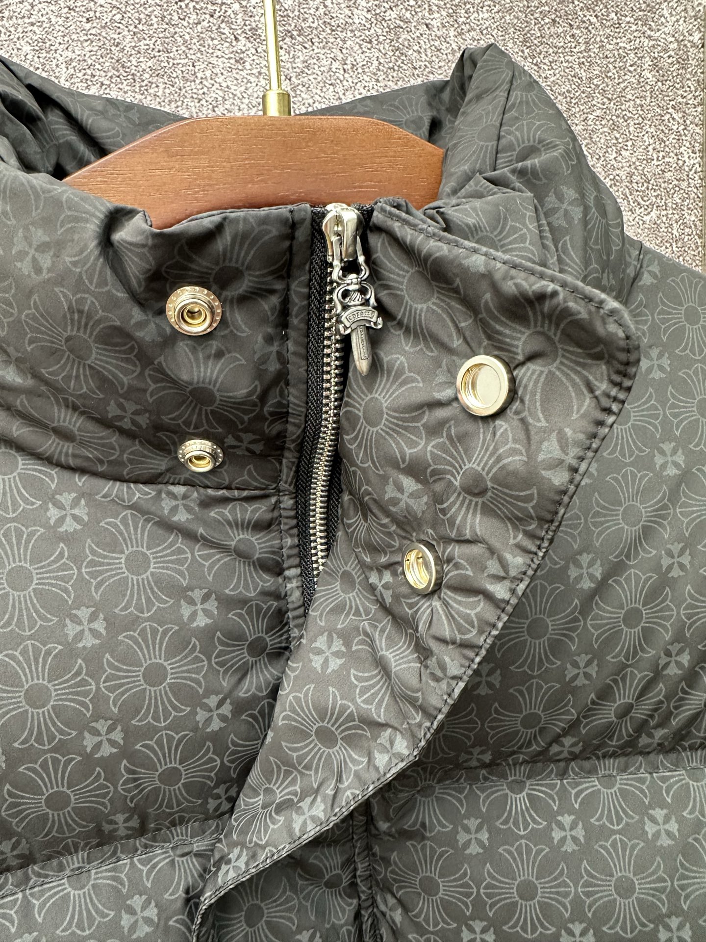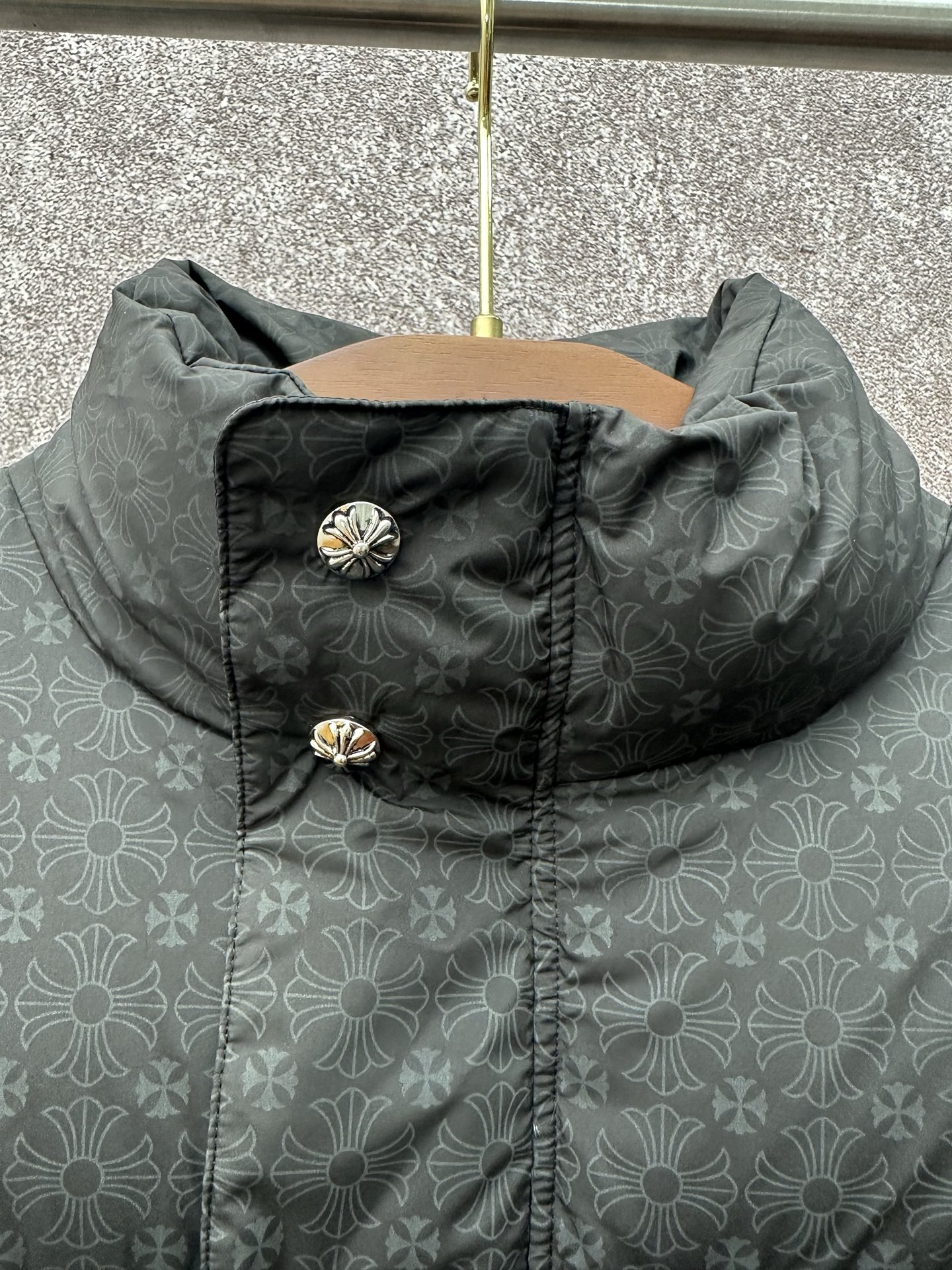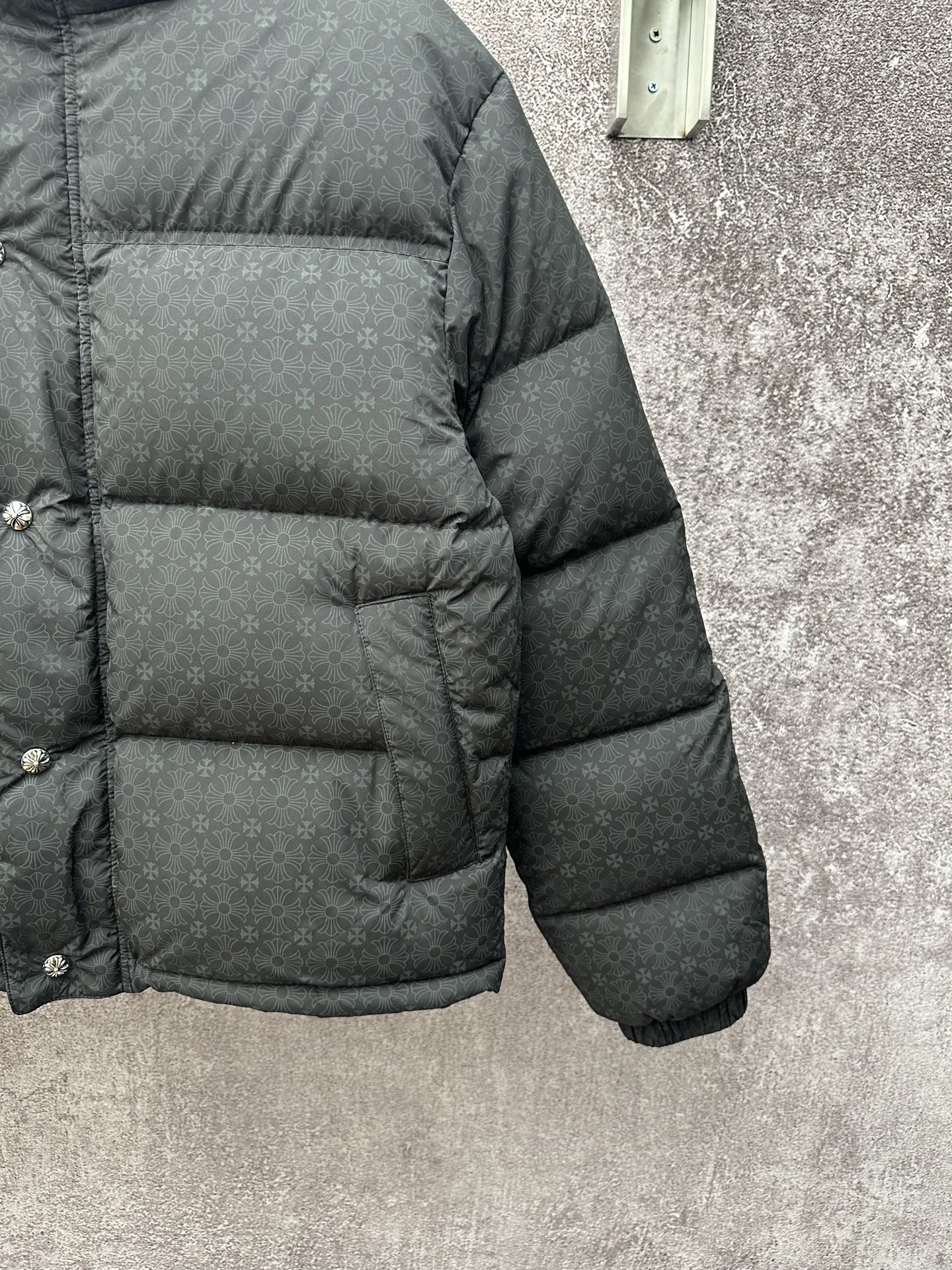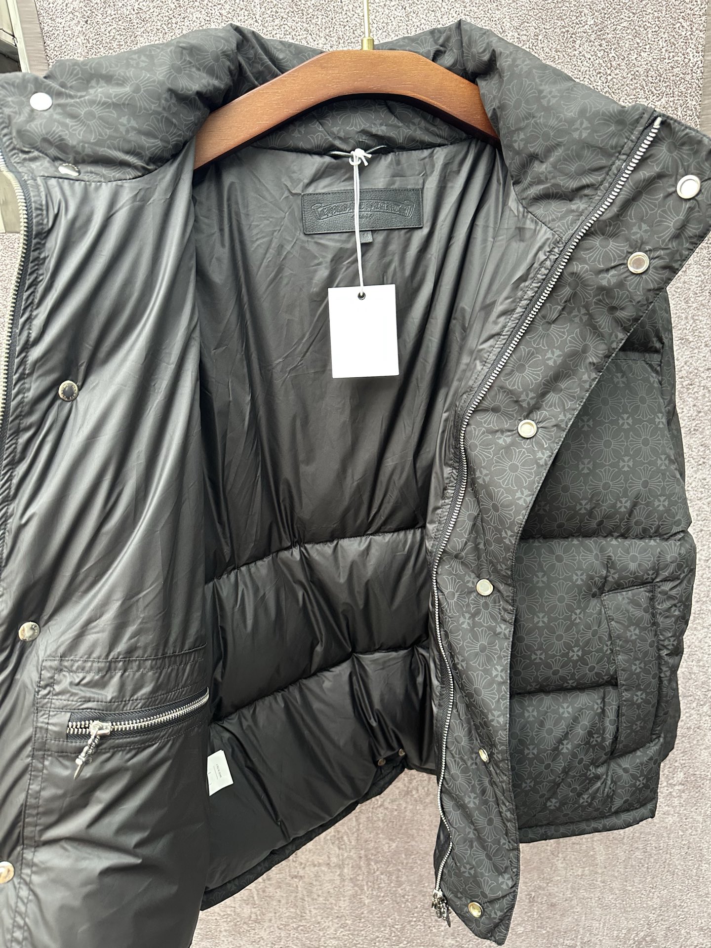 这款衣服是AAAAA 1:1 质量 (非常棒). 使用了和原版一模一样的材料. 商标部分也保持了和克罗心/Chrome Hearts一样. 图片拍摄是实物衣服拍摄, 您所收到的实物保证和我们图片一模一样.