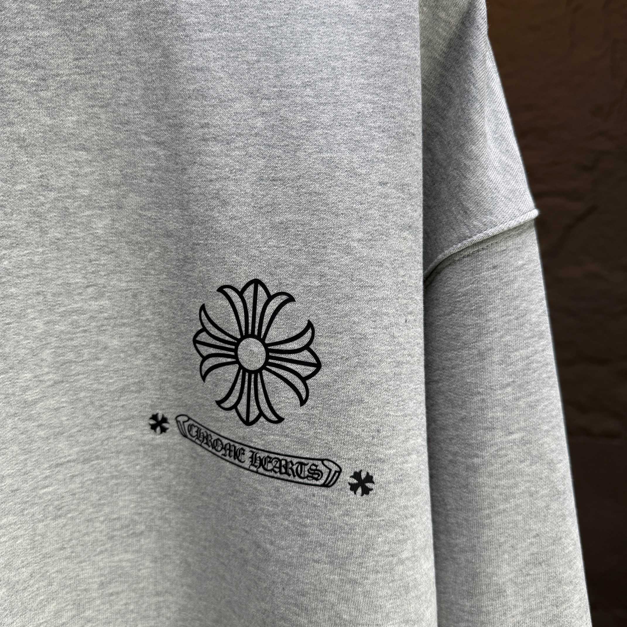 这款衣服是AAAAA 1:1 质量 (非常棒). 使用了和原版一模一样的材料. 商标部分也保持了和克罗心/Chrome Hearts一样. 图片拍摄是实物衣服拍摄, 您所收到的实物保证和我们图片一模一样.