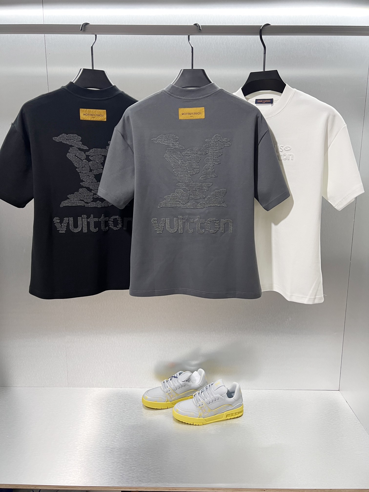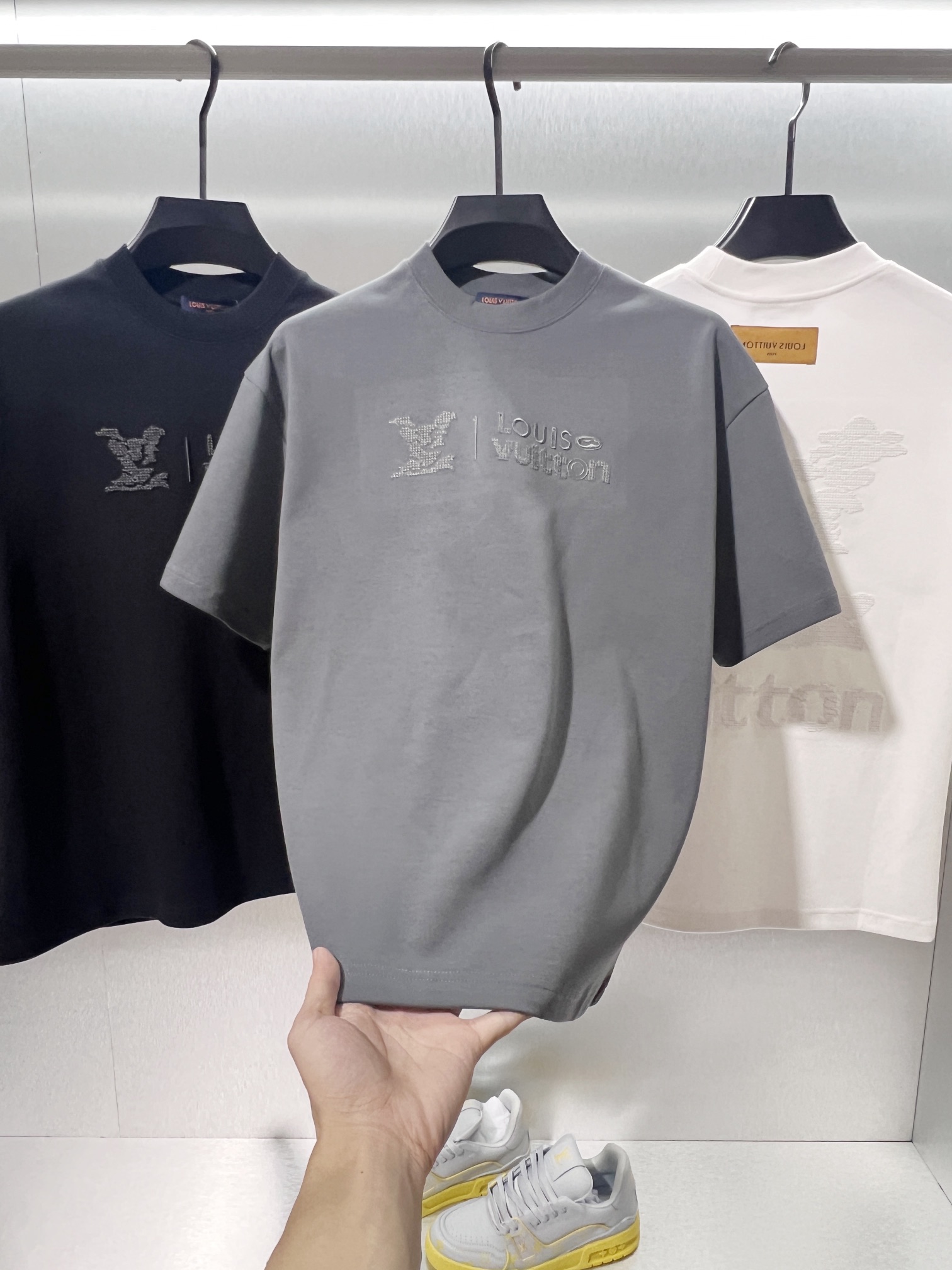这款衣服是AAAAA 1:1 质量 (非常棒). 使用了和原版一模一样的材料. 商标部分也保持了和路易威登/Louis Vuitton一样. 图片拍摄是实物衣服拍摄, 您所收到的实物保证和我们图片一模一样.