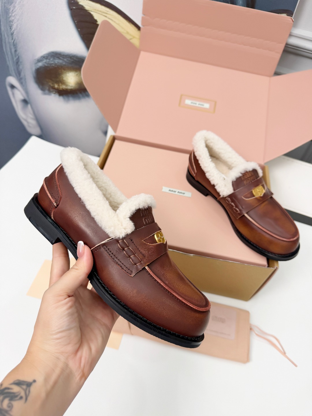 这款鞋子是AAAAA 1:1 质量 (非常棒). 使用了和原版一模一样的材料. 商标部分也保持了和缪缪/Miu Miu一样. 图片拍摄是实物鞋子拍摄, 您所收到的实物保证和我们图片一模一样.