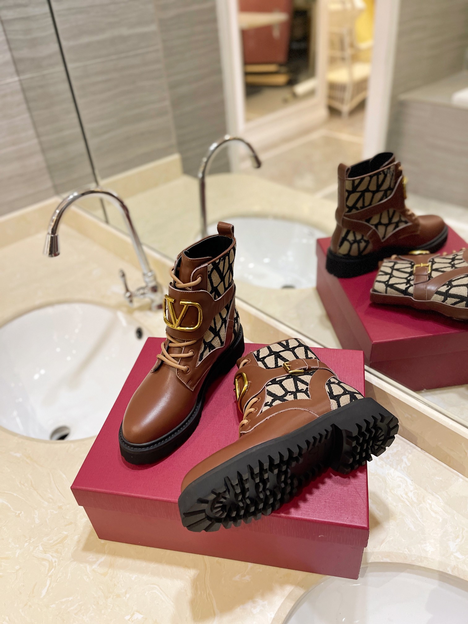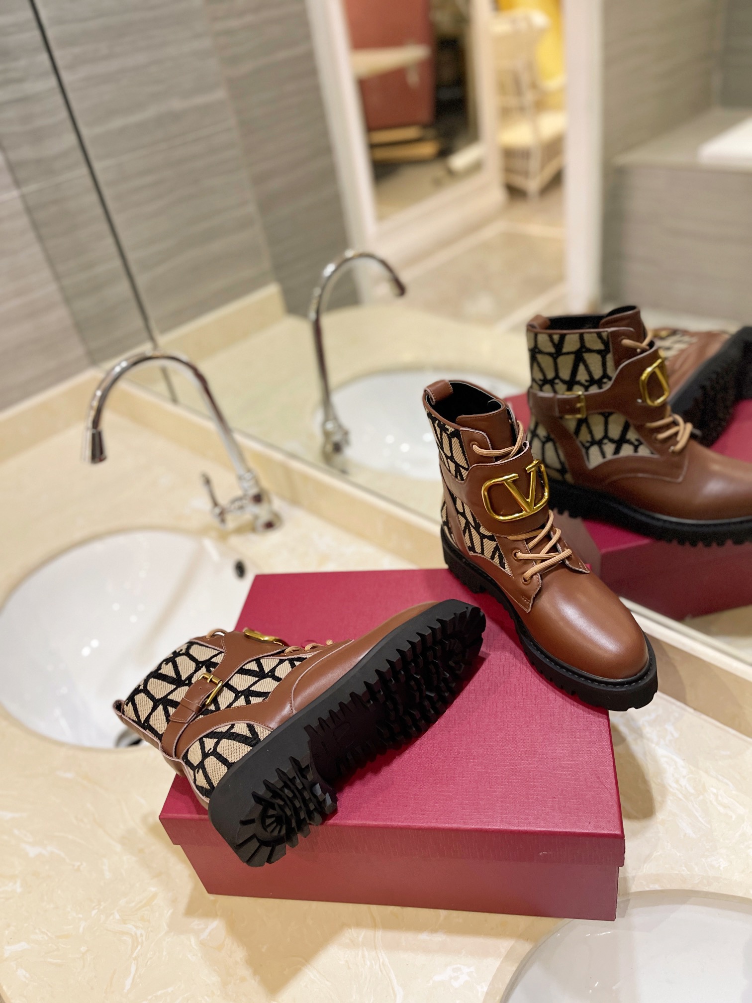 这款鞋子是AAAAA 1:1 质量 (非常棒). 使用了和原版一模一样的材料. 商标部分也保持了和华伦天奴/Valentino一样. 图片拍摄是实物鞋子拍摄, 您所收到的实物保证和我们图片一模一样.