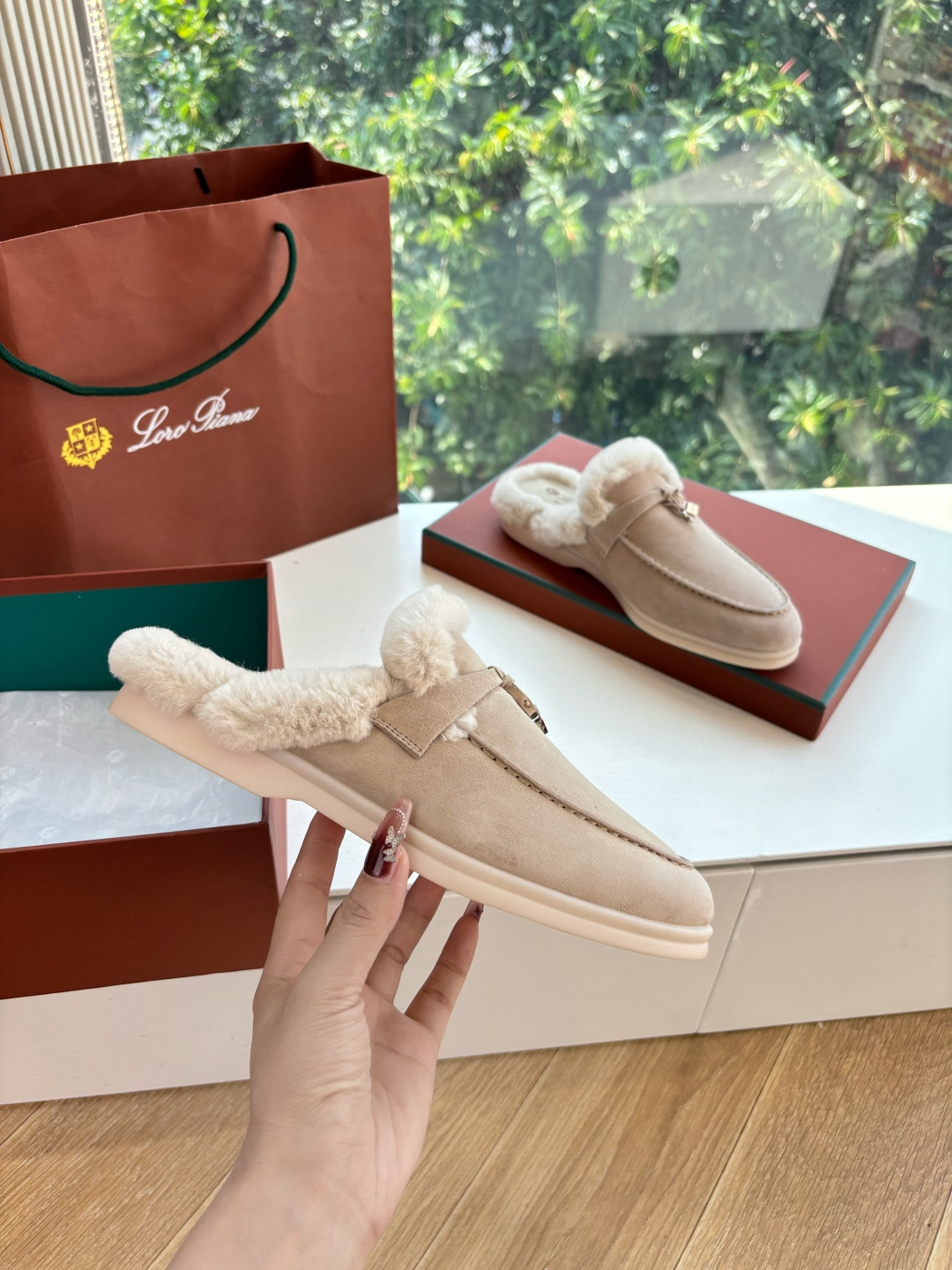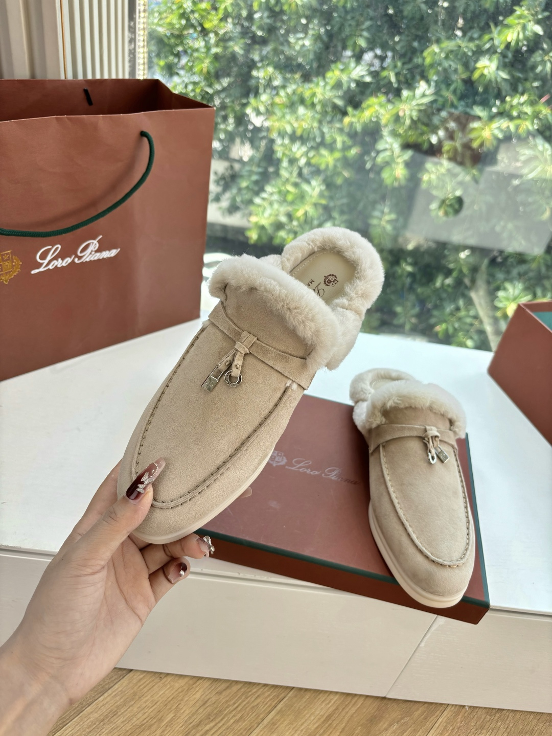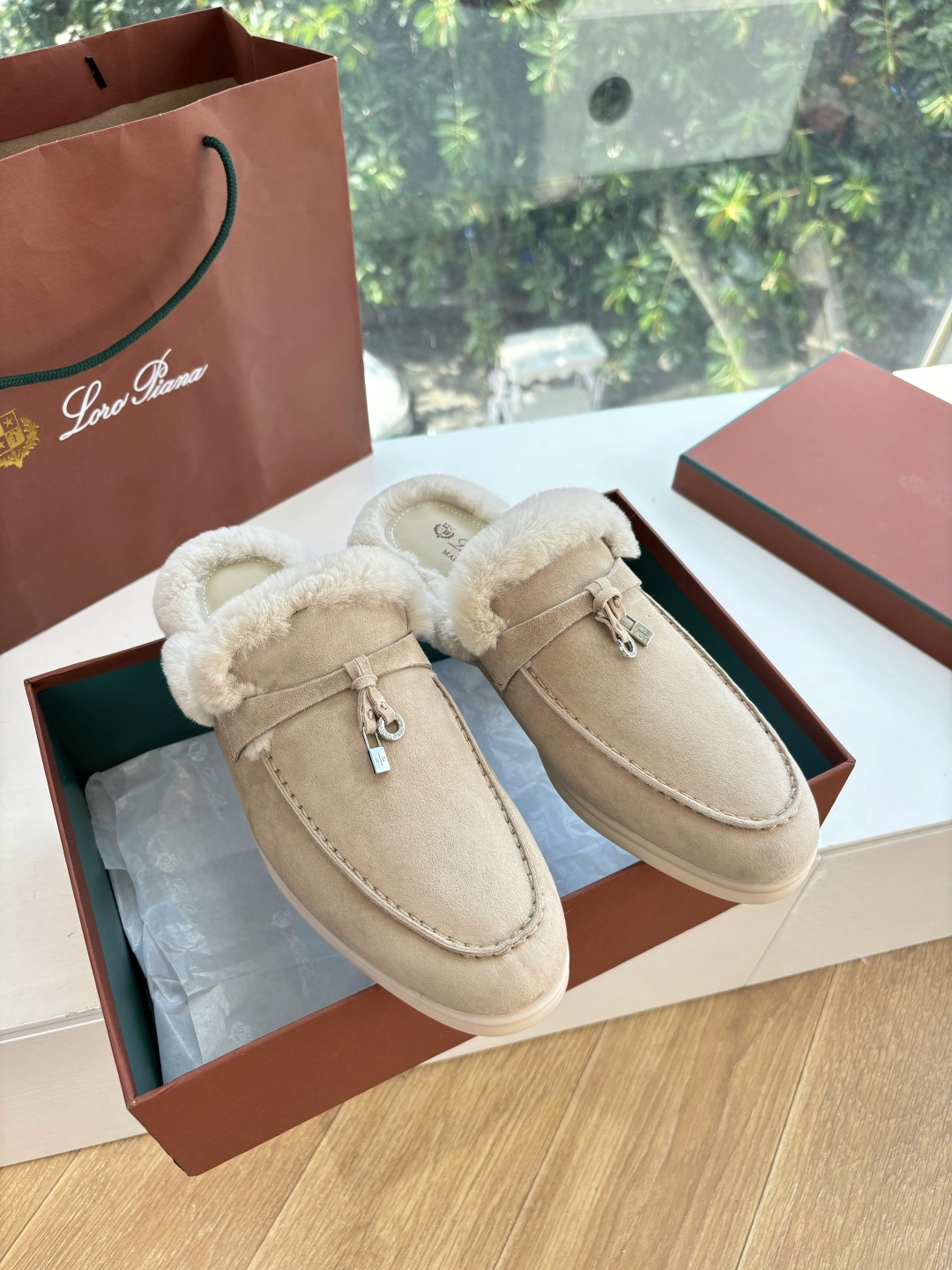 这款鞋子是AAAAA 1:1 质量 (非常棒). 使用了和原版一模一样的材料. 商标部分也保持了和洛罗皮亚纳/Loro Piana一样. 图片拍摄是实物鞋子拍摄, 您所收到的实物保证和我们图片一模一样.