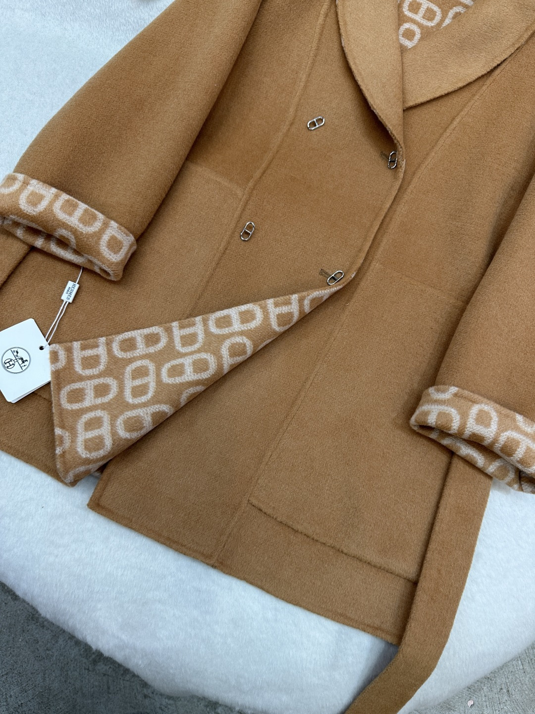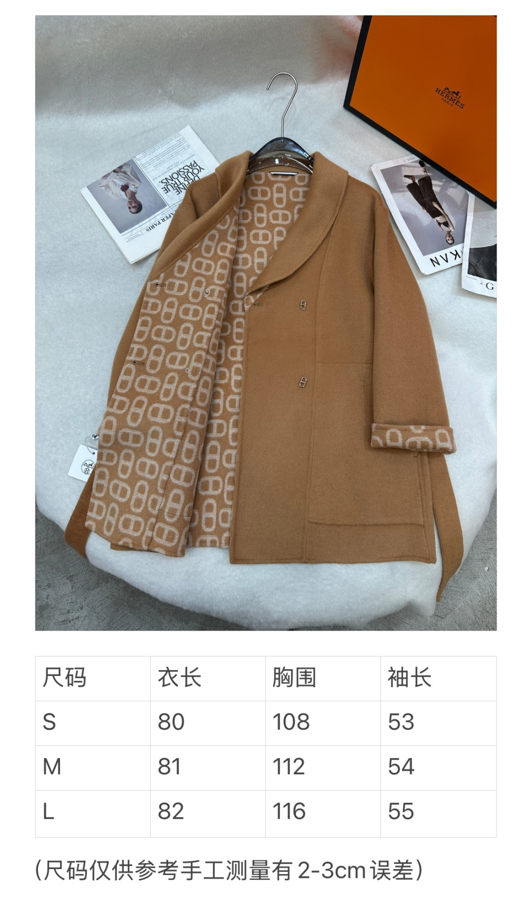 这款衣服是AAAAA 1:1 质量 (非常棒). 使用了和原版一模一样的材料. 商标部分也保持了和爱马仕/Hermes一样. 图片拍摄是实物衣服拍摄, 您所收到的实物保证和我们图片一模一样.