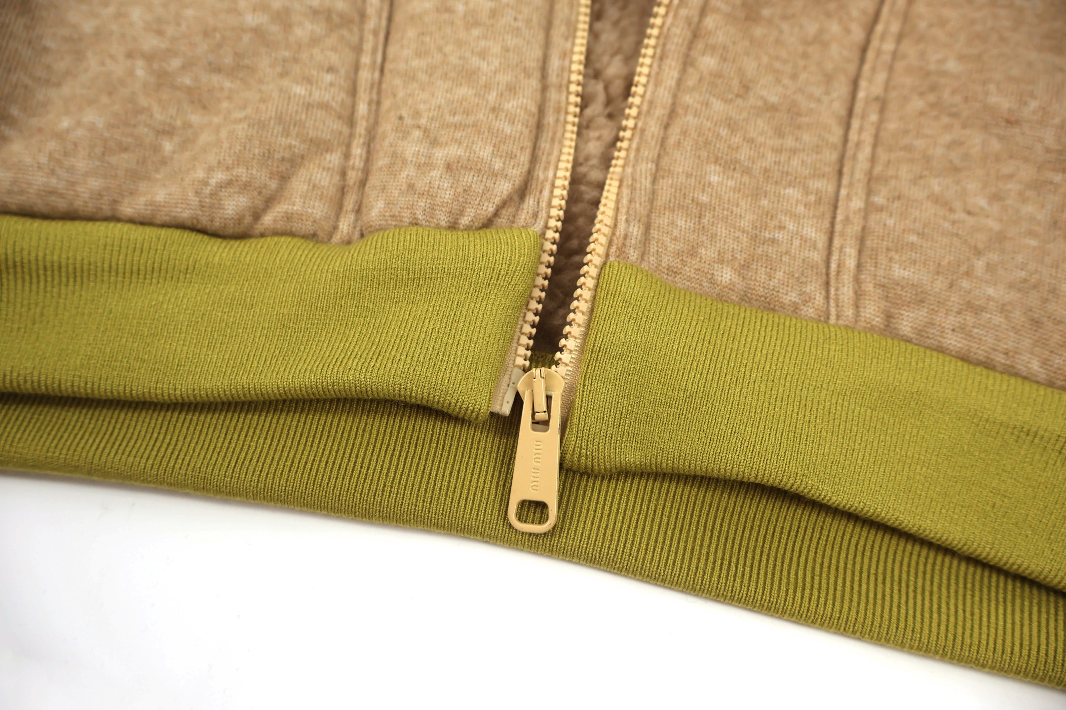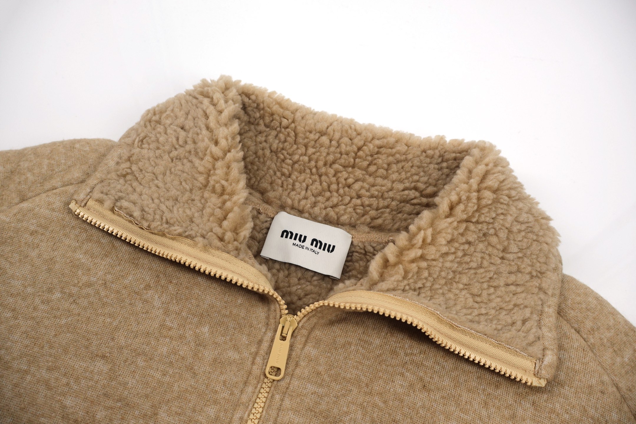 这款衣服是AAAAA 1:1 质量 (非常棒). 使用了和原版一模一样的材料. 商标部分也保持了和缪缪/Miu Miu一样. 图片拍摄是实物衣服拍摄, 您所收到的实物保证和我们图片一模一样.