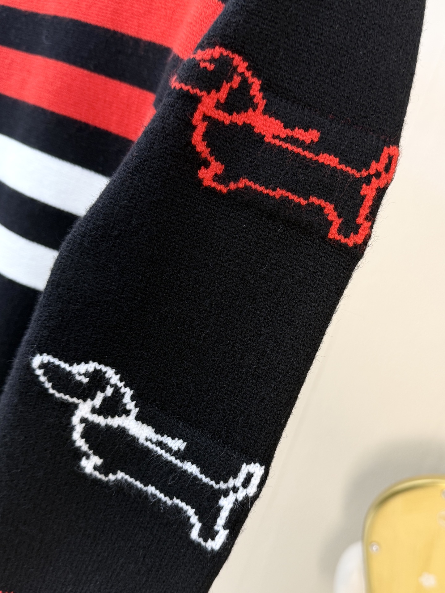 这款衣服是AAAAA 1:1 质量 (非常棒). 使用了和原版一模一样的材料. 商标部分也保持了和汤姆布朗/Thom Browne一样. 图片拍摄是实物衣服拍摄, 您所收到的实物保证和我们图片一模一样.