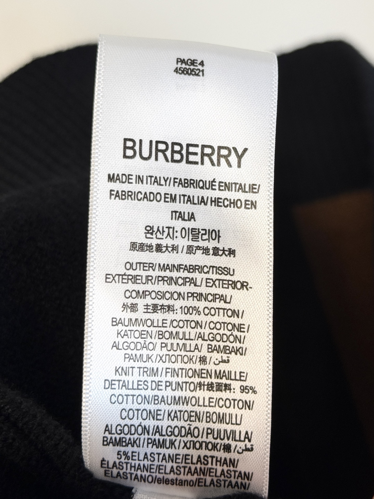 这款衣服是AAAAA 1:1 质量 (非常棒). 使用了和原版一模一样的材料. 商标部分也保持了和巴宝莉/Burberry一样. 图片拍摄是实物衣服拍摄, 您所收到的实物保证和我们图片一模一样.