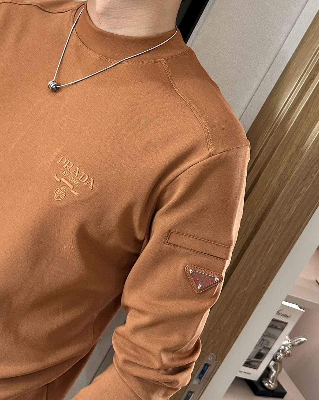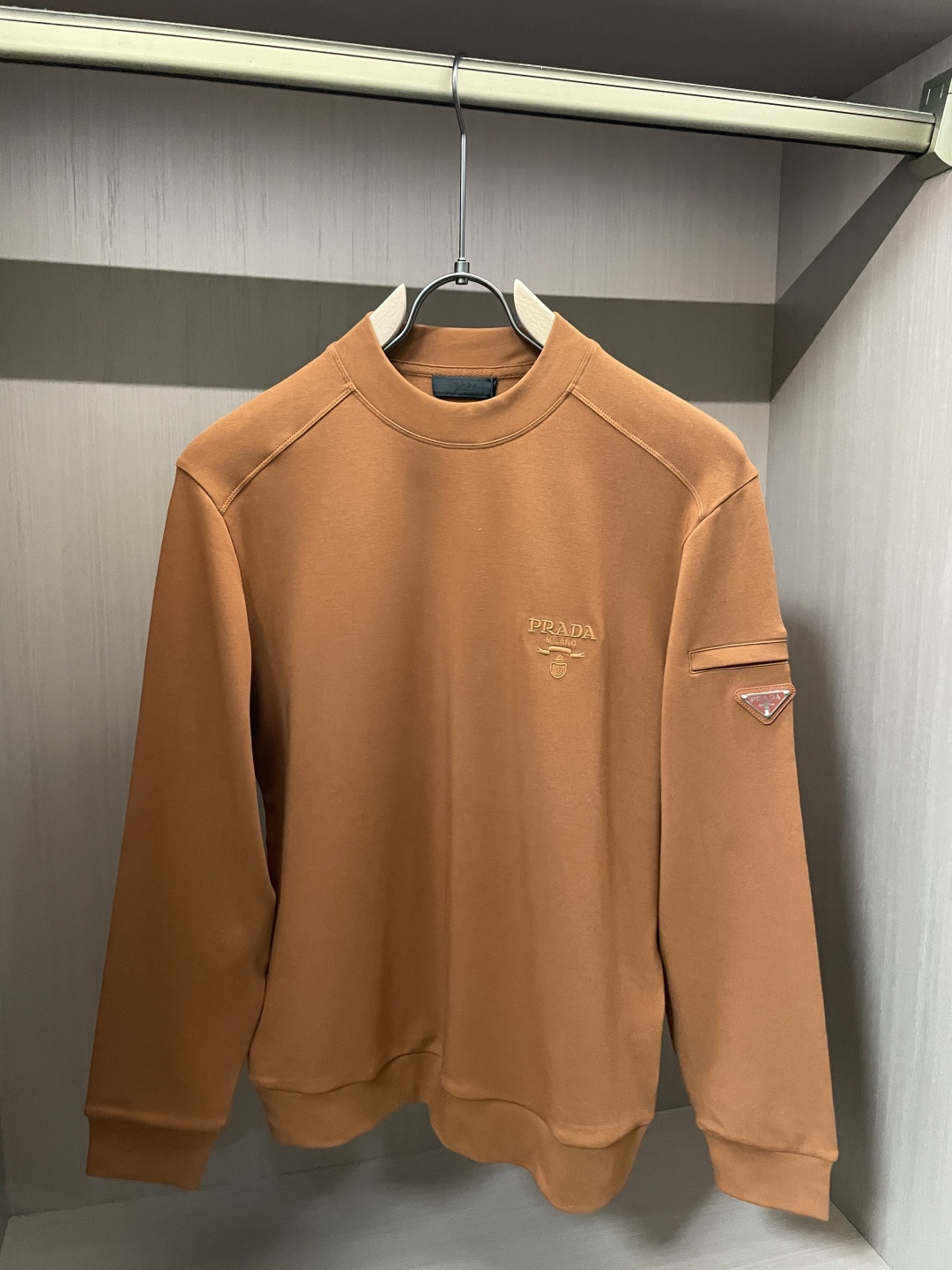 这款衣服是AAAAA 1:1 质量 (非常棒). 使用了和原版一模一样的材料. 商标部分也保持了和普拉达/Prada一样. 图片拍摄是实物衣服拍摄, 您所收到的实物保证和我们图片一模一样.