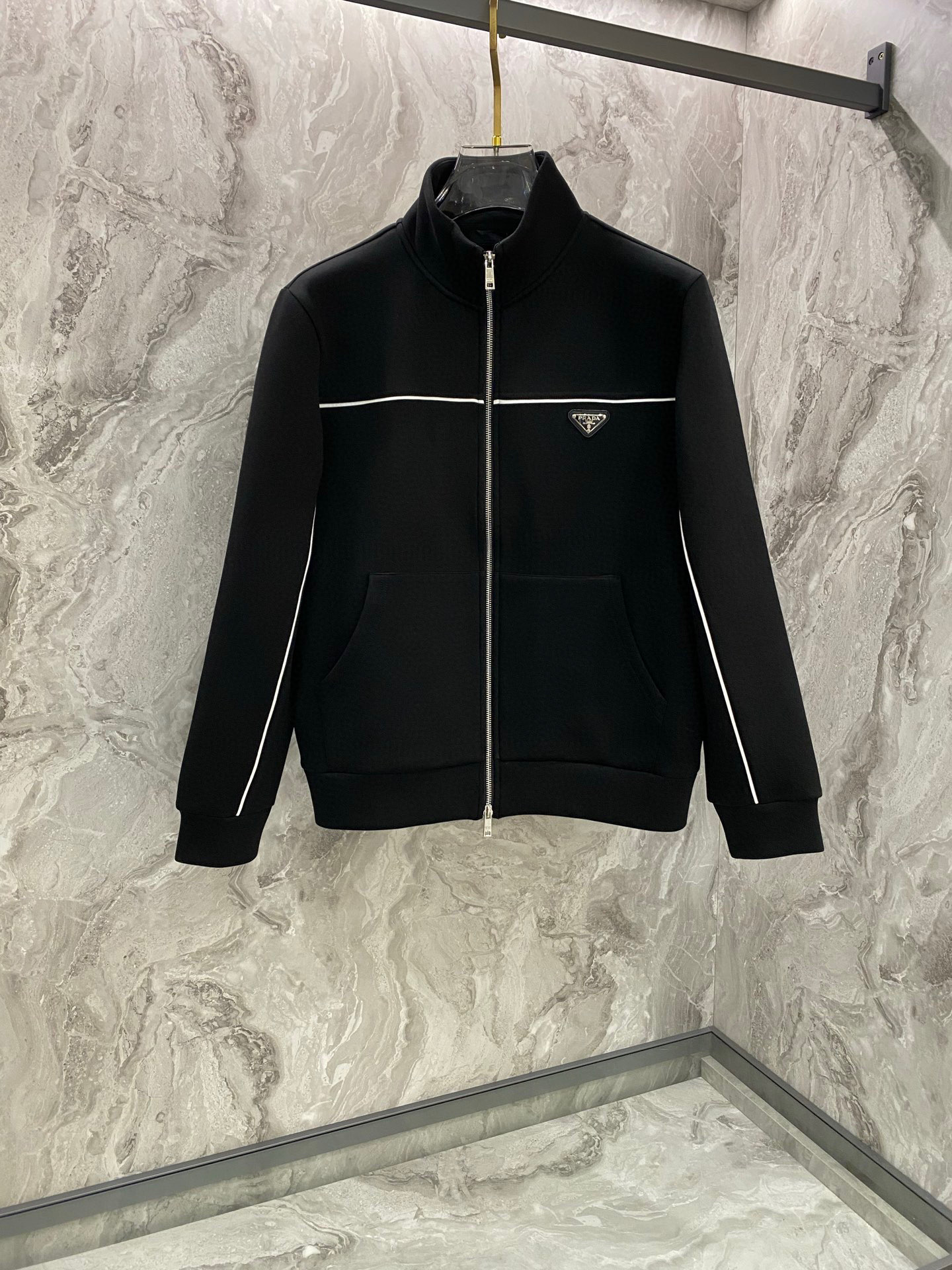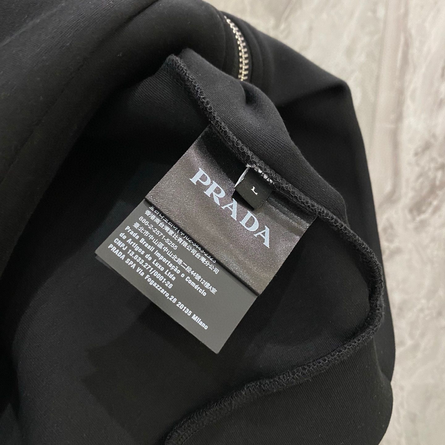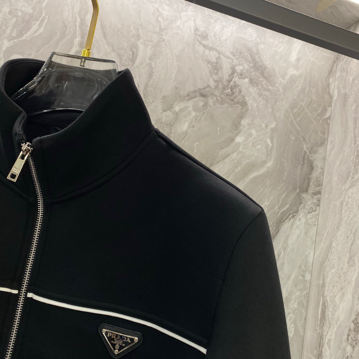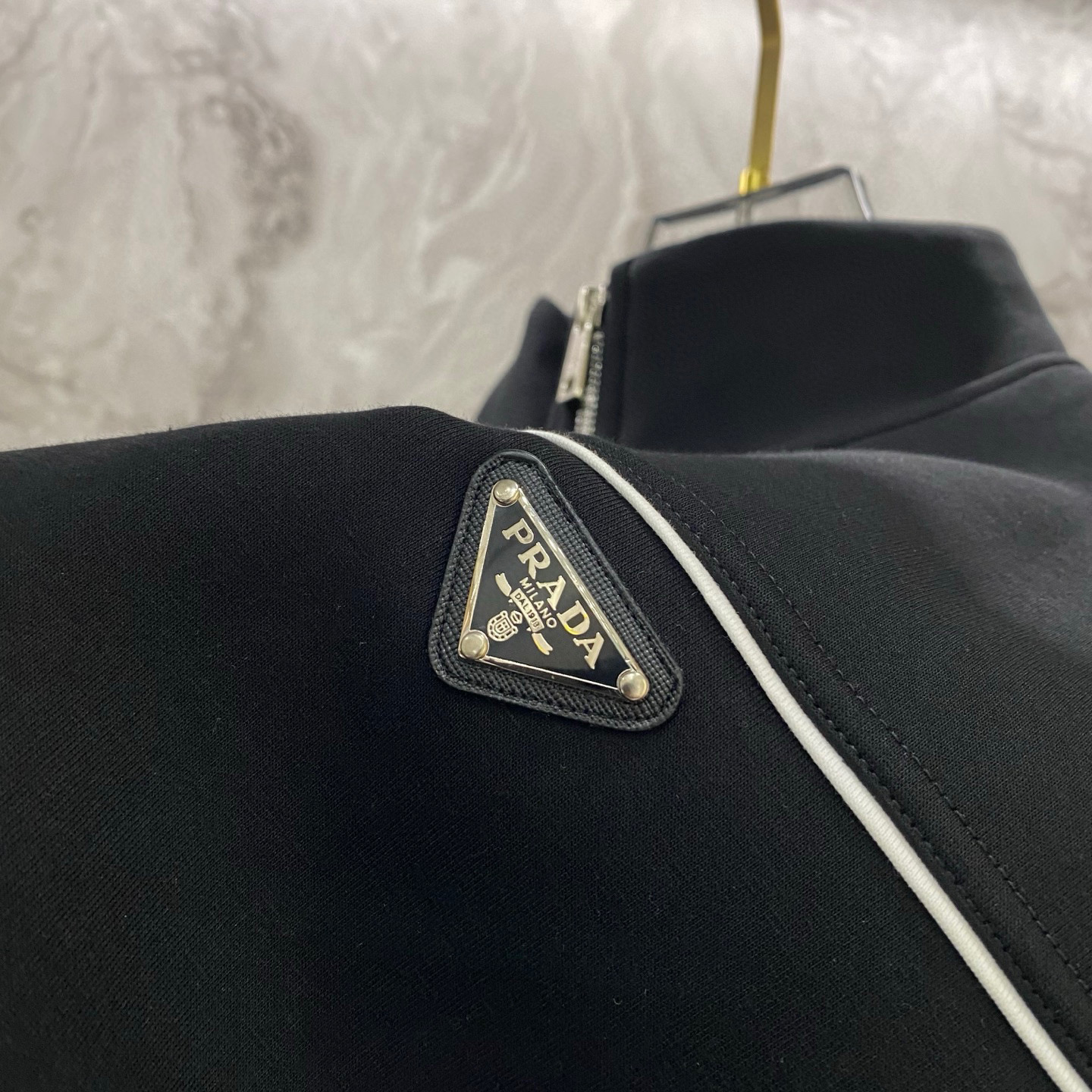 这款衣服是AAAAA 1:1 质量 (非常棒). 使用了和原版一模一样的材料. 商标部分也保持了和普拉达/Prada一样. 图片拍摄是实物衣服拍摄, 您所收到的实物保证和我们图片一模一样.