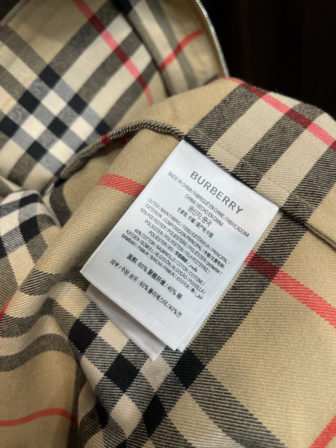 这款衣服是AAAAA 1:1 质量 (非常棒). 使用了和原版一模一样的材料. 商标部分也保持了和巴宝莉/Burberry一样. 图片拍摄是实物衣服拍摄, 您所收到的实物保证和我们图片一模一样.