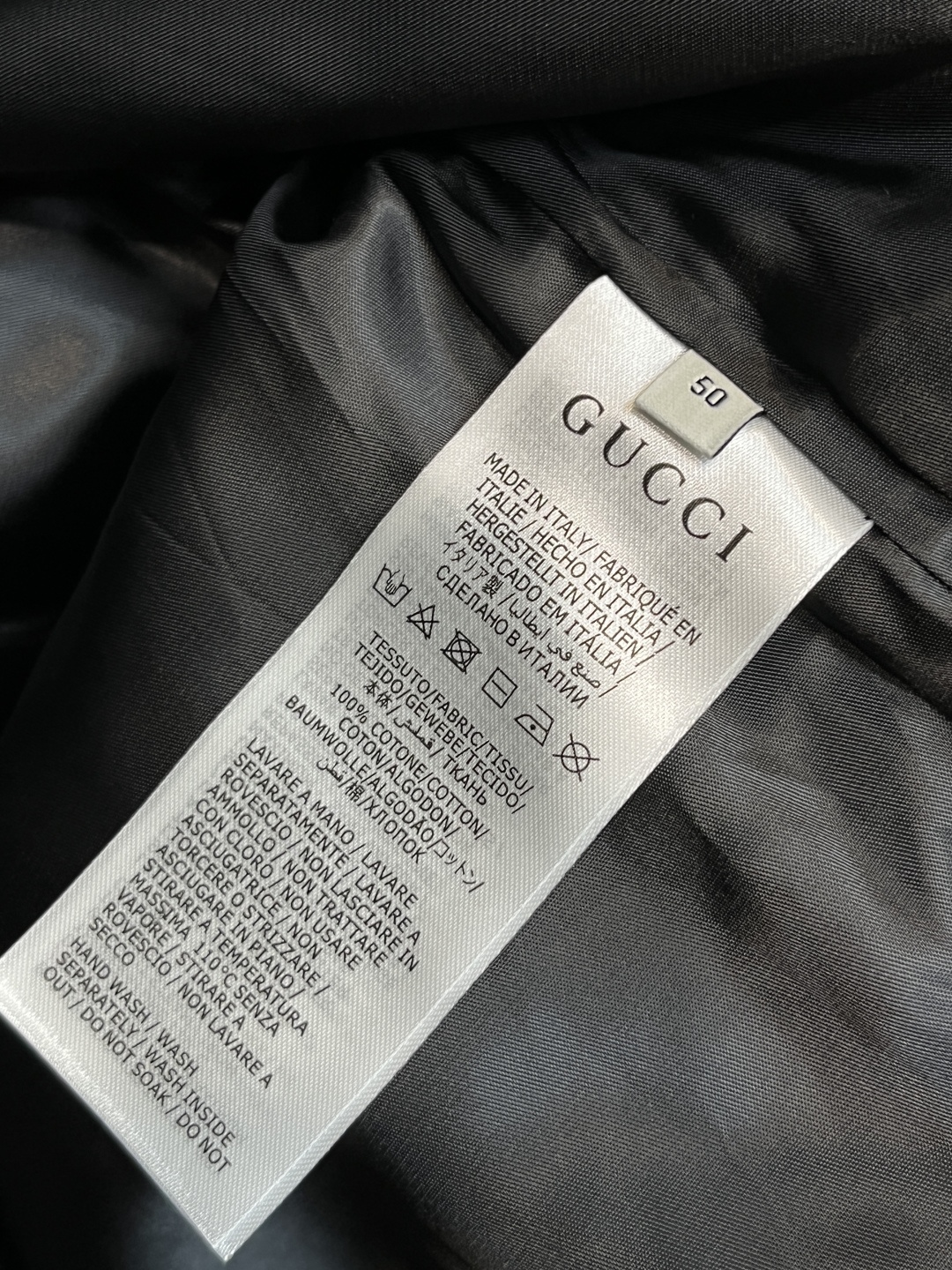 这款衣服是AAAAA 1:1 质量 (非常棒). 使用了和原版一模一样的材料. 商标部分也保持了和古奇/Gucci一样. 图片拍摄是实物衣服拍摄, 您所收到的实物保证和我们图片一模一样.