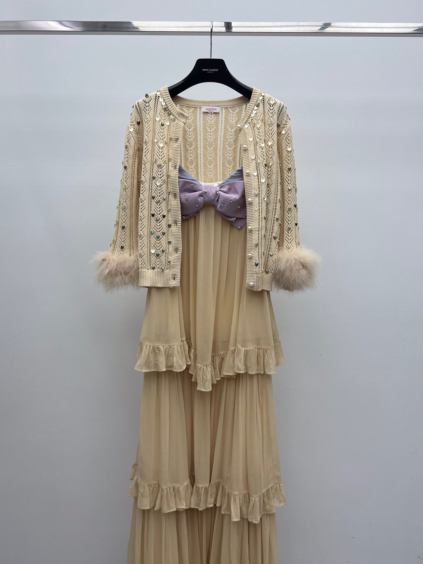 这款衣服是AAAAA 1:1 质量 (非常棒). 使用了和原版一模一样的材料. 商标部分也保持了和华伦天奴/Valentino一样. 图片拍摄是实物衣服拍摄, 您所收到的实物保证和我们图片一模一样.