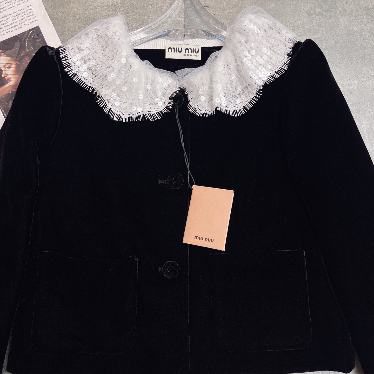 这款衣服是AAAAA 1:1 质量 (非常棒). 使用了和原版一模一样的材料. 商标部分也保持了和缪缪/Miu Miu一样. 图片拍摄是实物衣服拍摄, 您所收到的实物保证和我们图片一模一样.