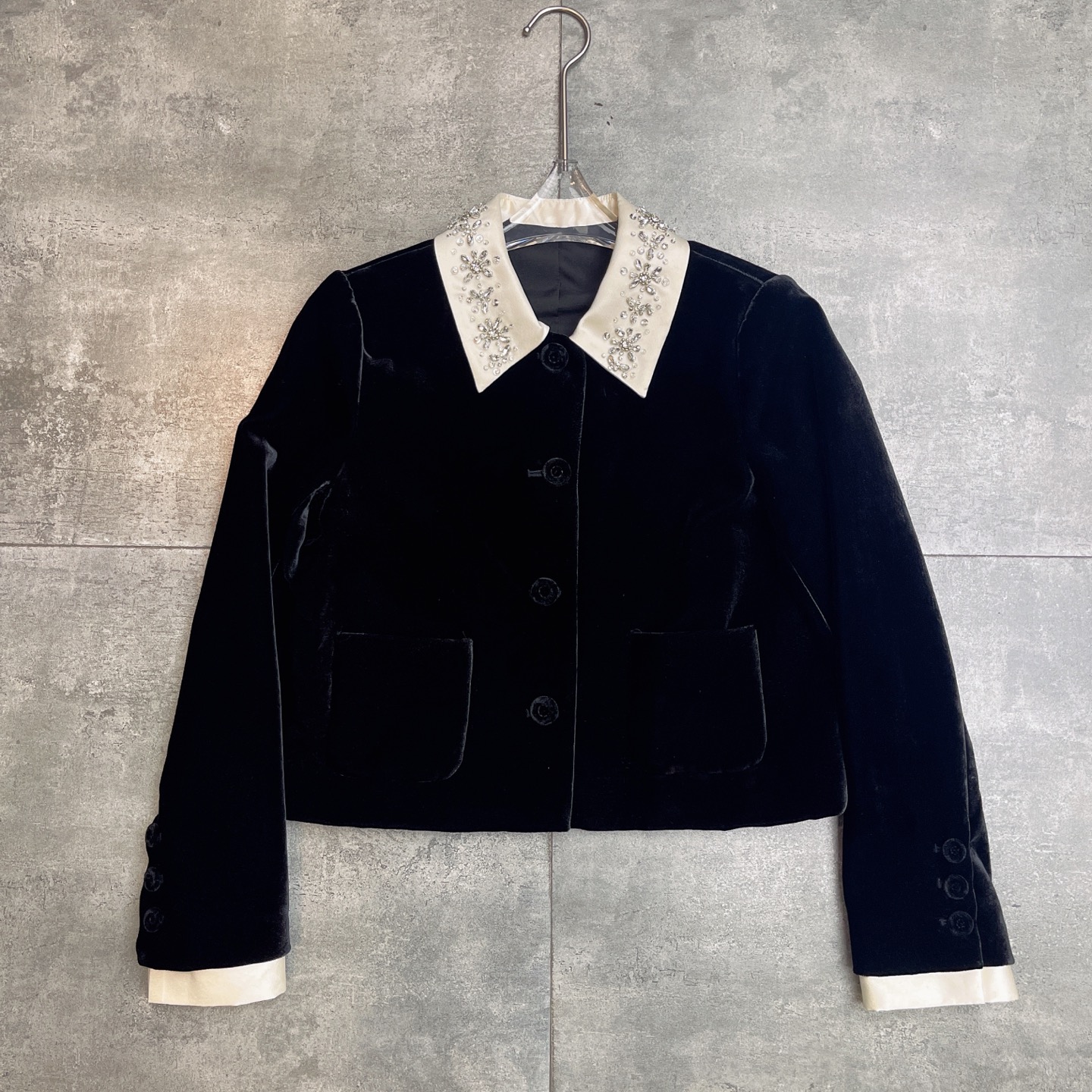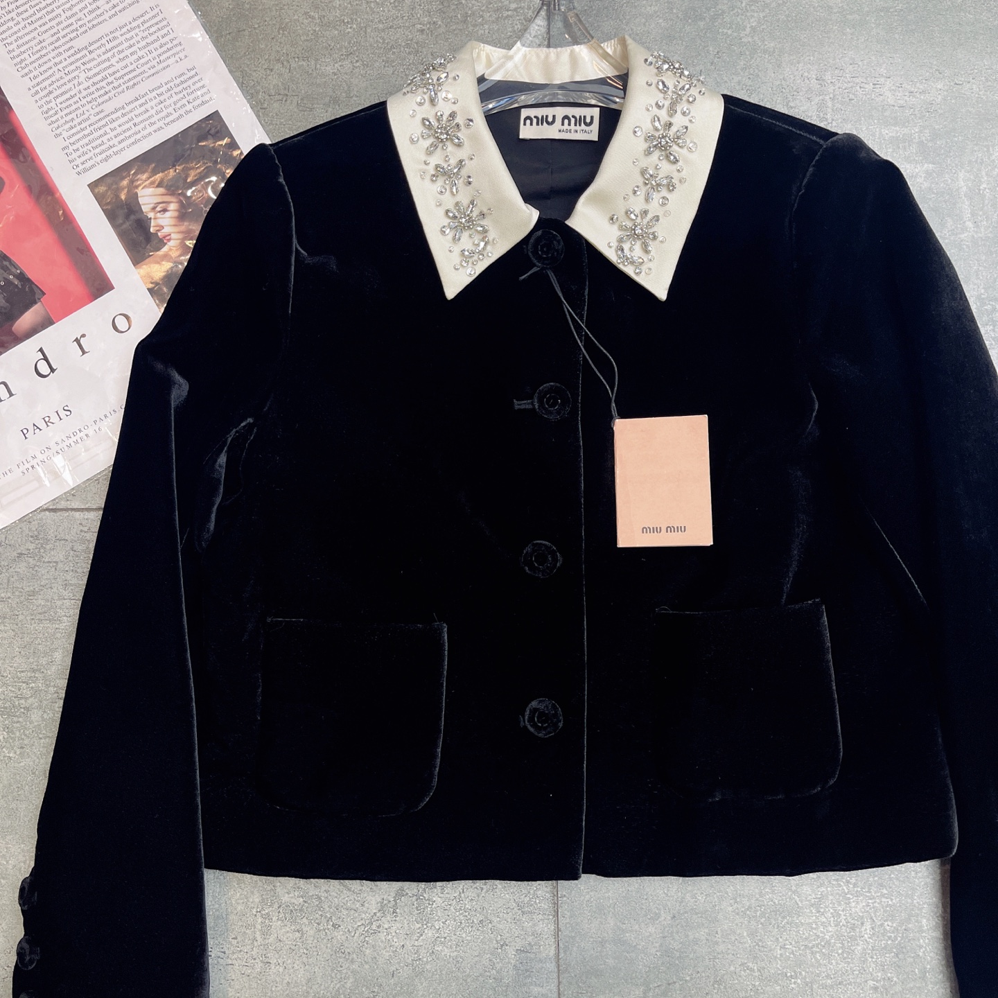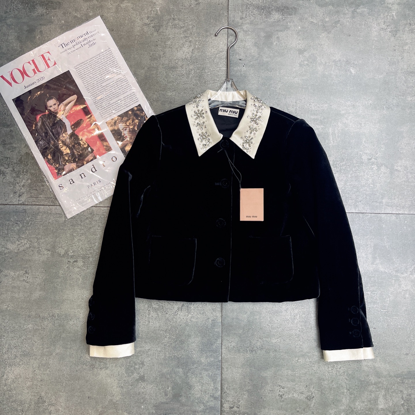 这款衣服是AAAAA 1:1 质量 (非常棒). 使用了和原版一模一样的材料. 商标部分也保持了和缪缪/Miu Miu一样. 图片拍摄是实物衣服拍摄, 您所收到的实物保证和我们图片一模一样.