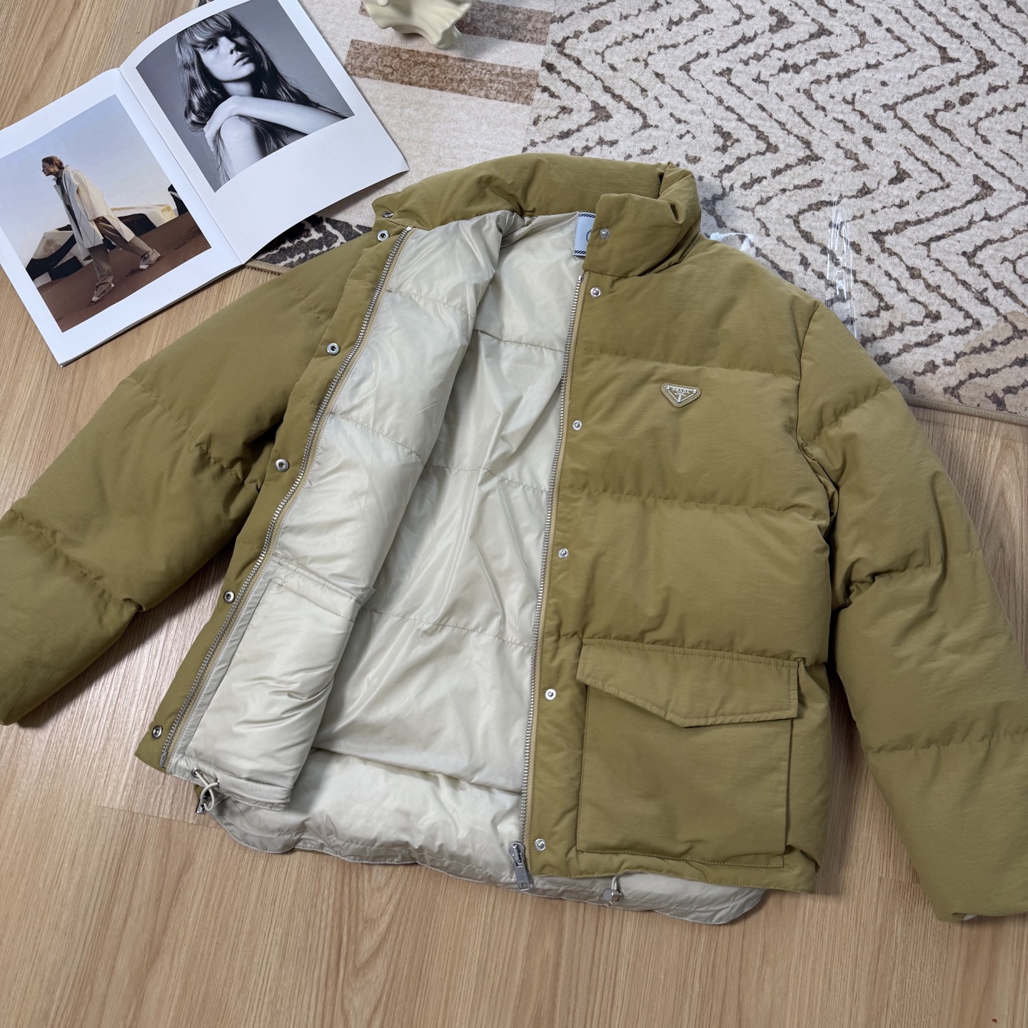 这款衣服是AAAAA 1:1 质量 (非常棒). 使用了和原版一模一样的材料. 商标部分也保持了和普拉达/Prada一样. 图片拍摄是实物衣服拍摄, 您所收到的实物保证和我们图片一模一样.