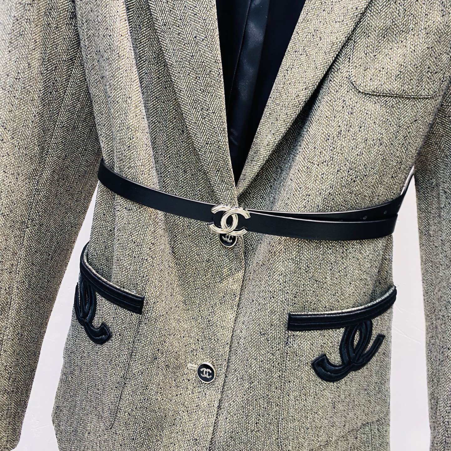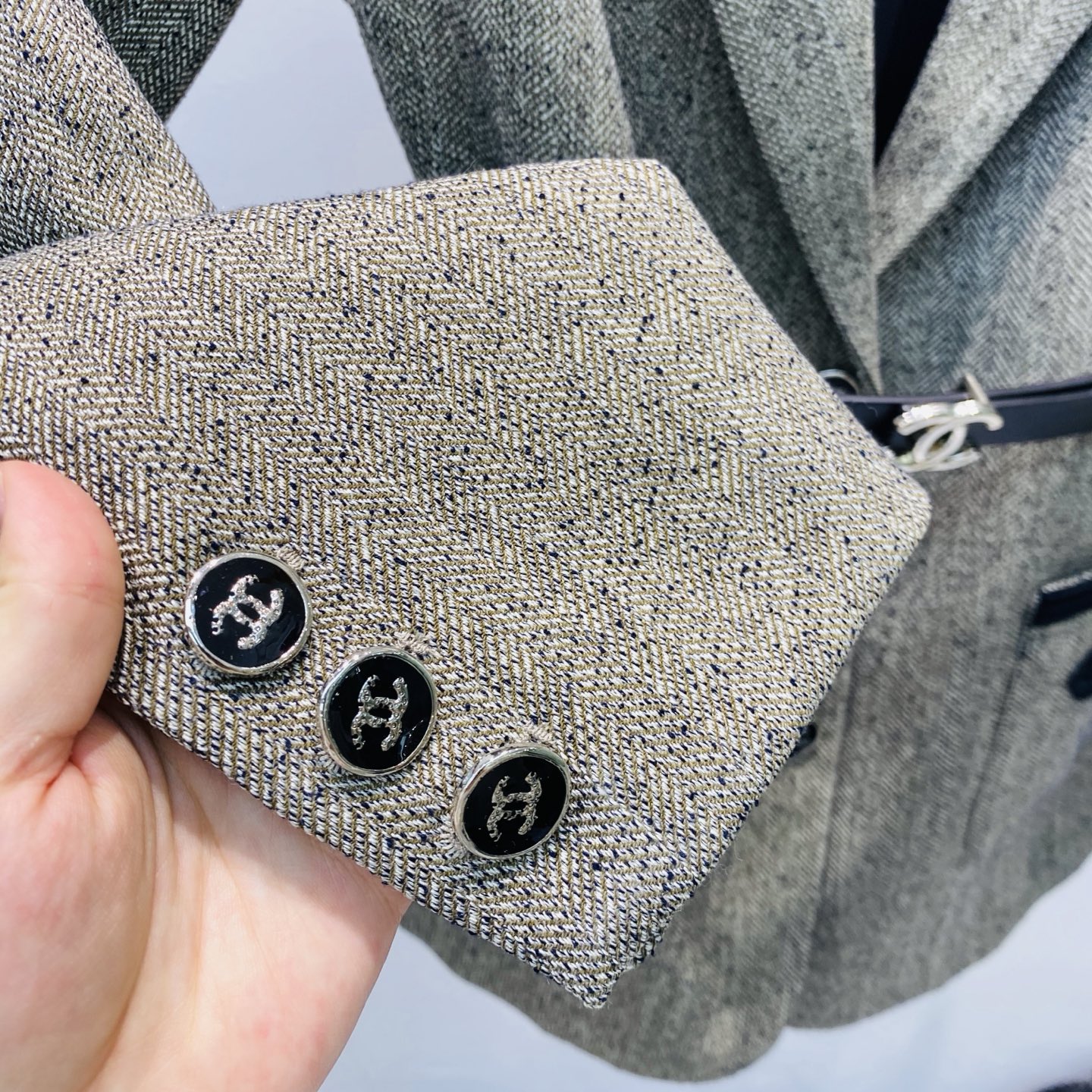 这款衣服是AAAAA 1:1 质量 (非常棒). 使用了和原版一模一样的材料. 商标部分也保持了和香奈儿/Chanel一样. 图片拍摄是实物衣服拍摄, 您所收到的实物保证和我们图片一模一样.